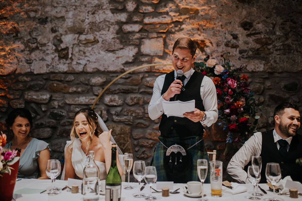 Daisy and Craig’s wedding took place at one of Fife’s most popular barn venues, where there was surprise speeches and impromptu performances