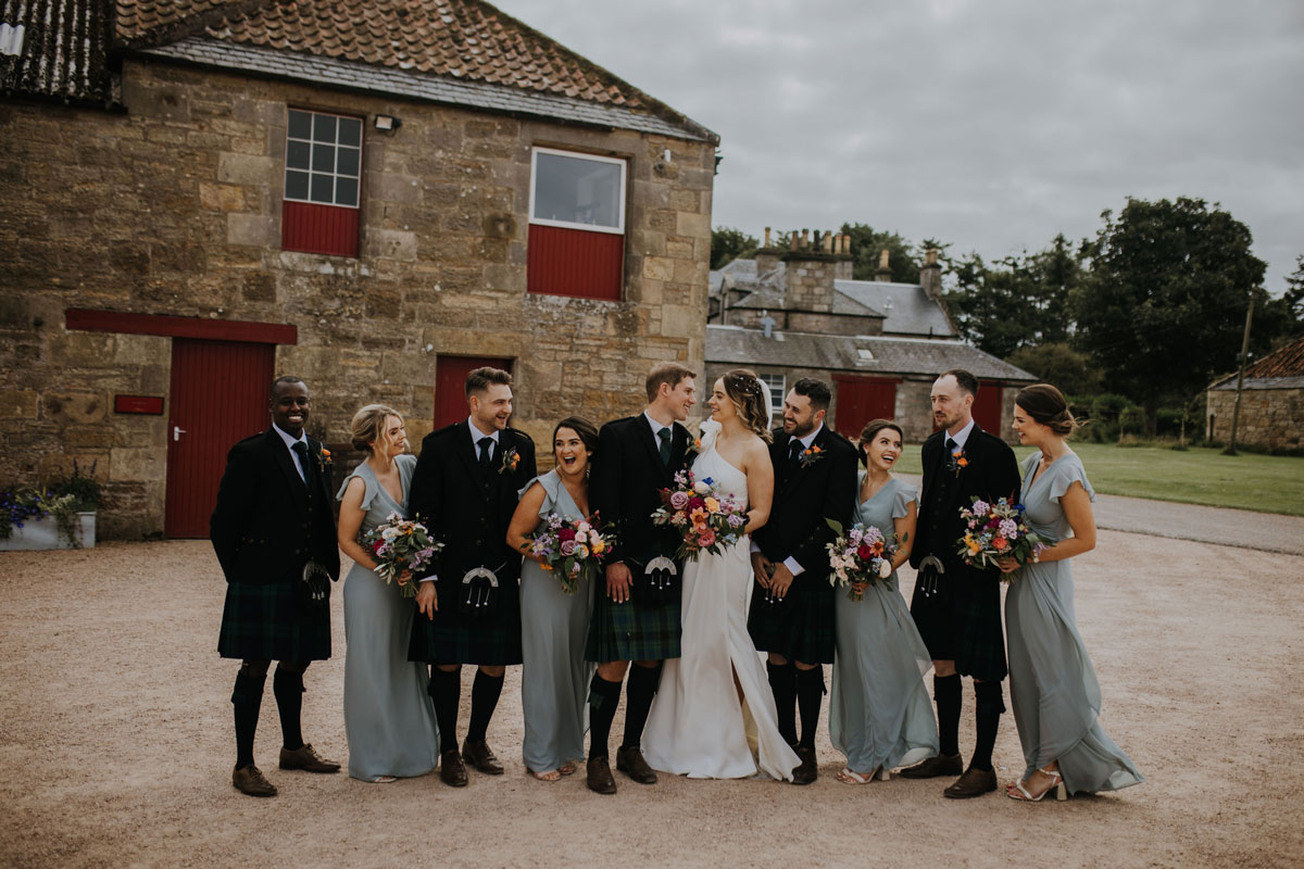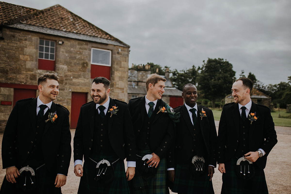 Groomswear Groom’s own kilt, with groomsmen outfits hired from McCalls