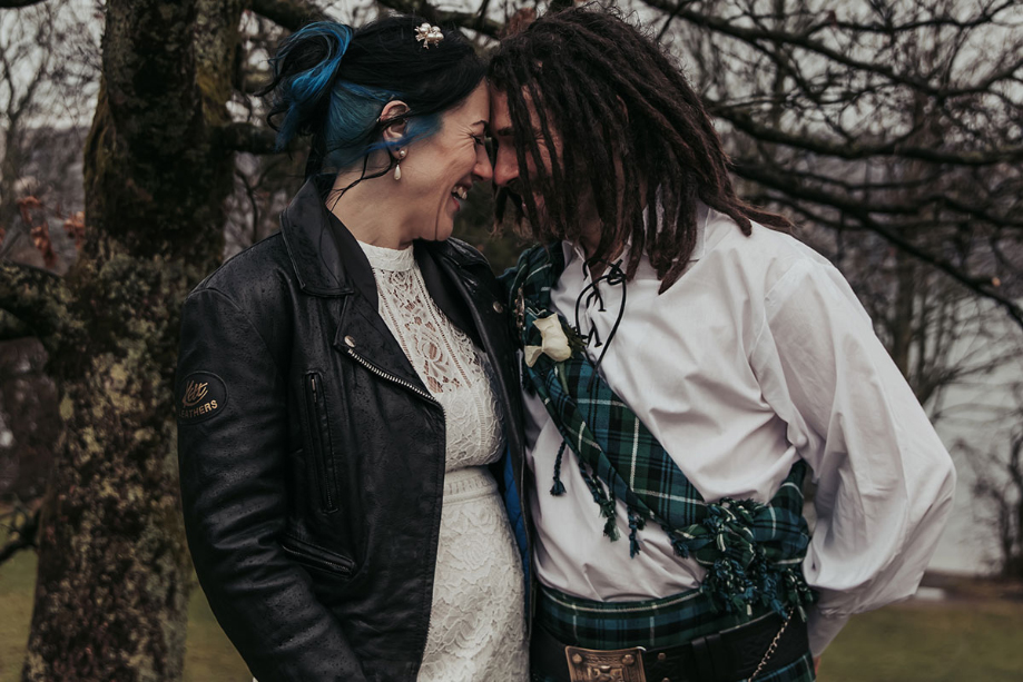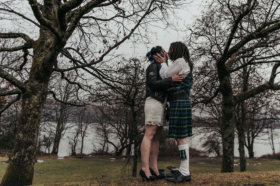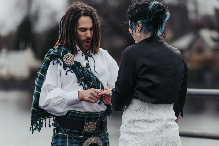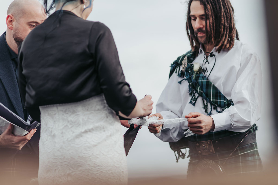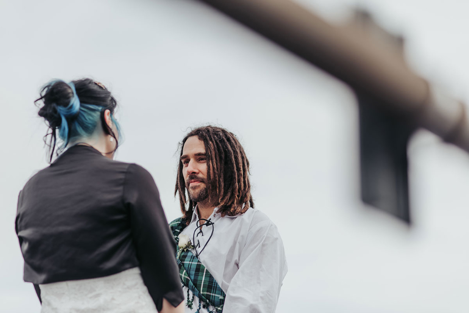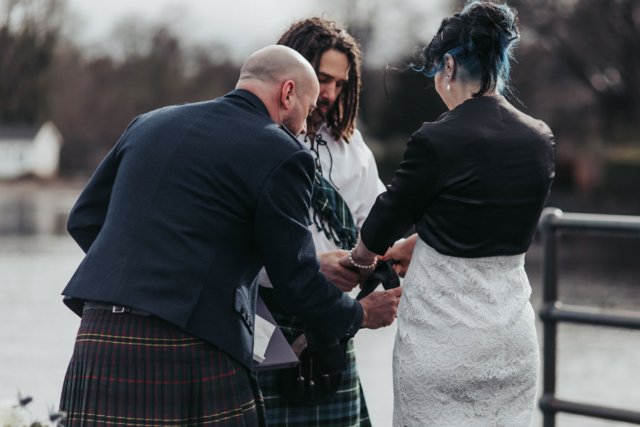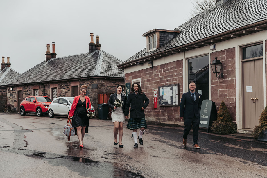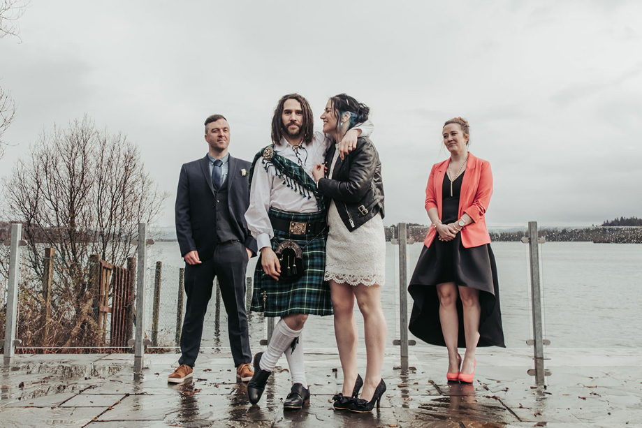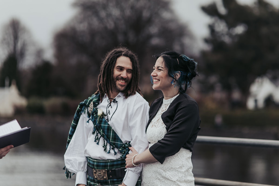 There was heavy sleet when we parked up on the day of the wedding. I was wearing a short lace dress and Stephen was in a kilt! We decided to hold off and within a few minutes, the weather miraculously cleared. It stayed off for the duration of our lovely wee humanist ceremony, led by celebrant David Kennedy.