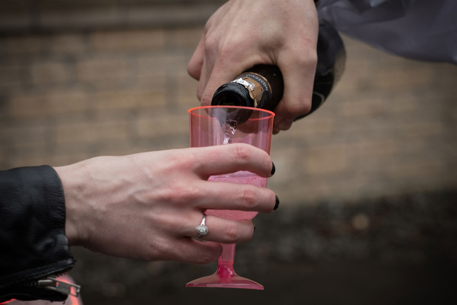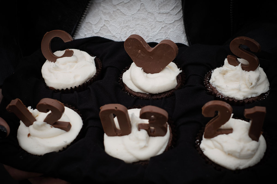 After the ceremony, I had prepared a picnic for us to eat back at the car. Neither of us drink, so we toasted our marriage with a few glasses of ‘No-secco’. I also made six cupcakes which read ‘C heart S 12 03 21’.