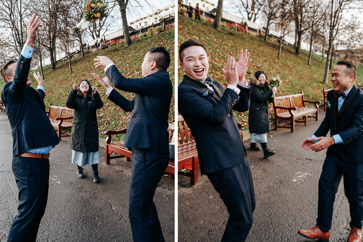 The one wedding tradition I was most excited about? Tossing the bouquet! I had longed for this my whole life, so Angus and I threw the bouquet together to our only single friend there. It was so much fun!