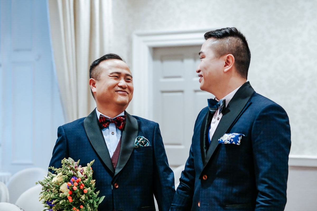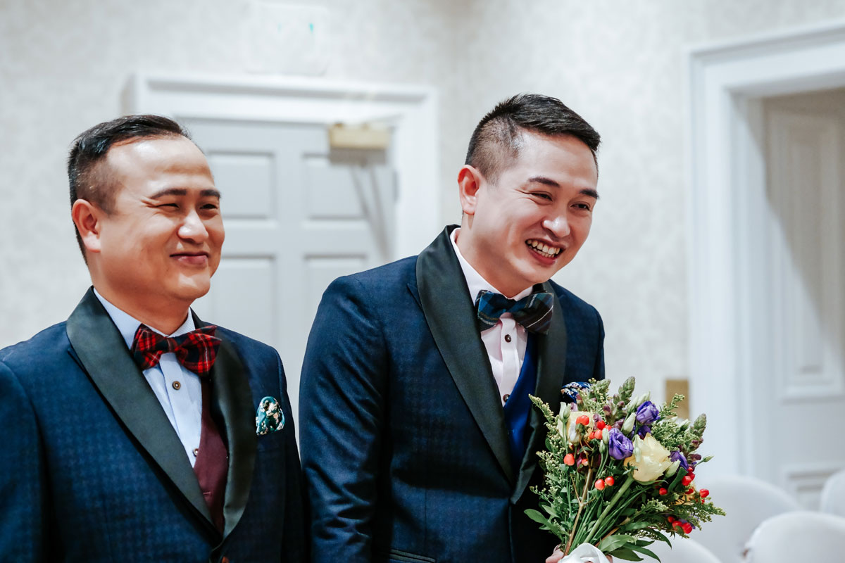 The ceremony was over in a flash. Angus was emotional when saying his vows, so I grabbed his hands to let him know it’s all alright. It’s hard to repeat the wedding vows, so he got a bit tongue-tied too – it’s a long and difficult verse with a lot of unfamiliar words. I laughed, but it was all so touching.