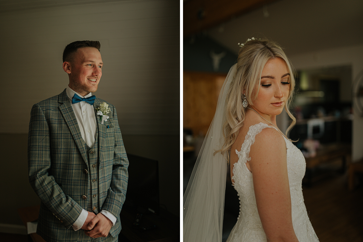 As a result, on the day, we really enjoyed our couple’s photoshoot. I adore our images posing in a field and on the venue’s decking as the sun was setting. Her impromptu pictures, such as the one of Heidi watching me in my dress on the morning of our wedding, are so precious too.