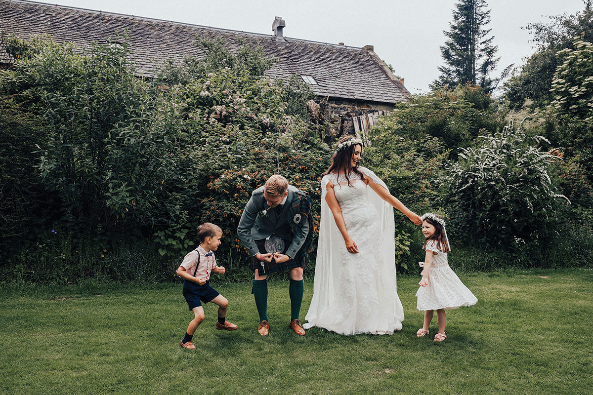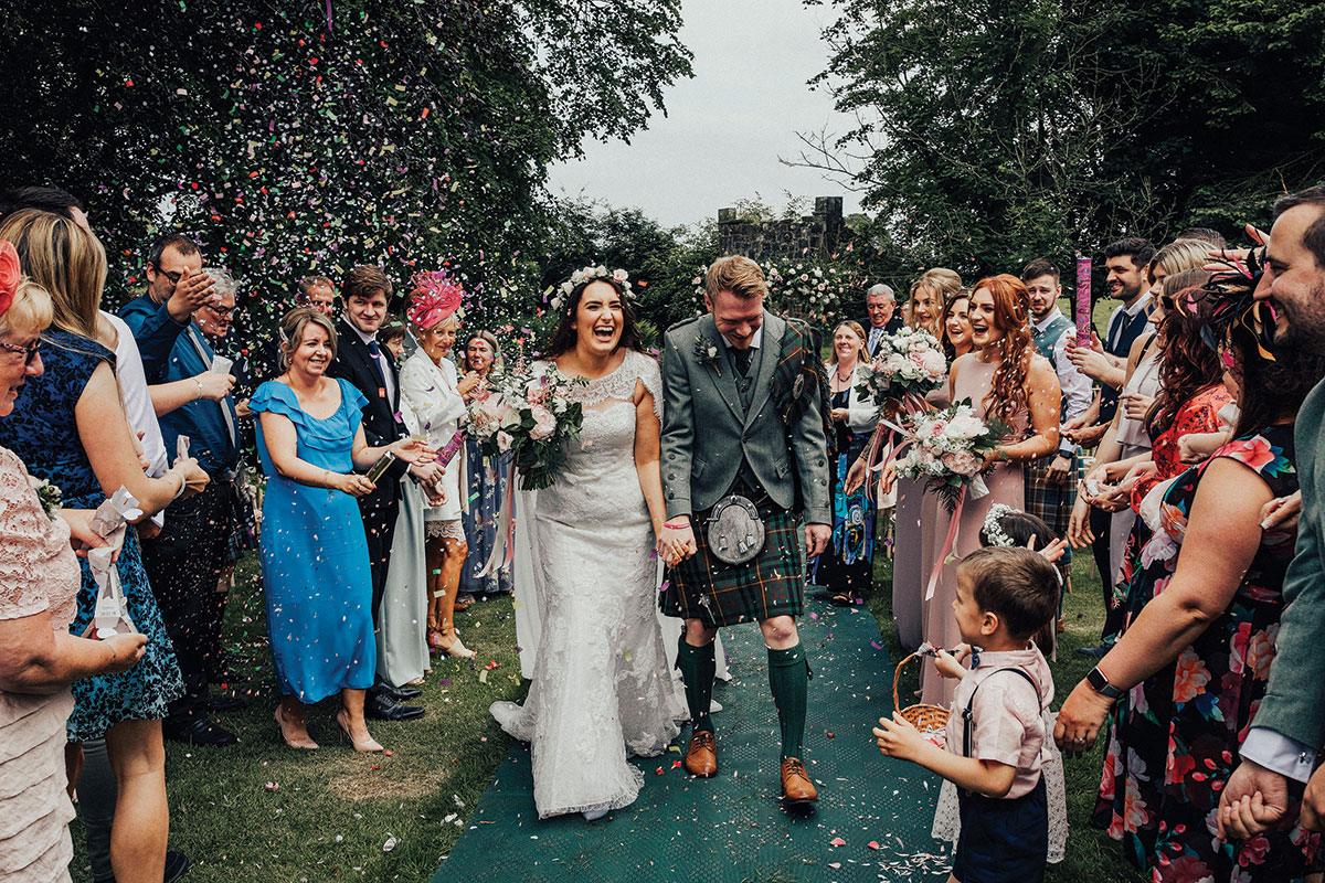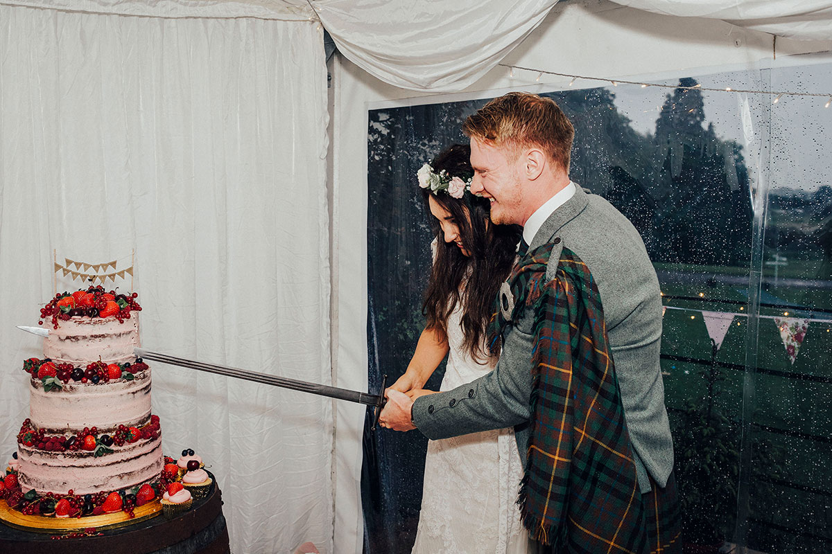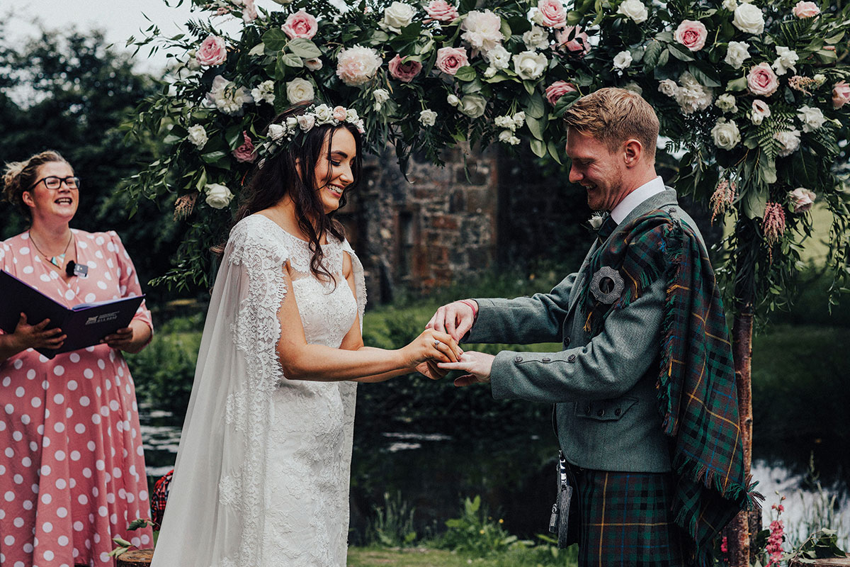 In terms of our aesthetic, Scott and I were originally inspired by Outlander, but mixed this up by combining Scottish vibes with a pastel colour scheme. I walked down the aisle to bagpipes playing The Skye Boat Song, we tied the knot (literally!), and I wrote a poem in Scots detailing how my grandparents, parents and Scott and I met respectively.