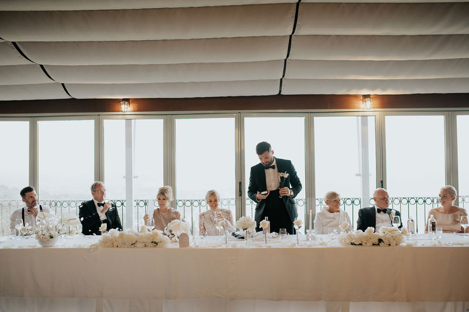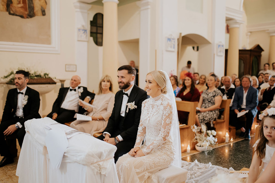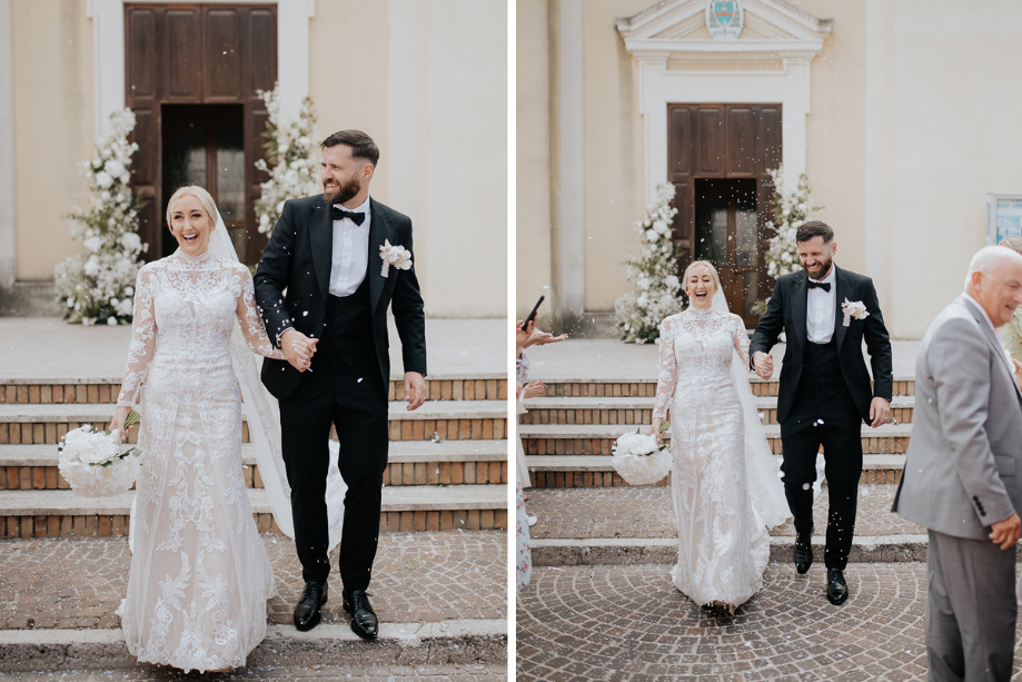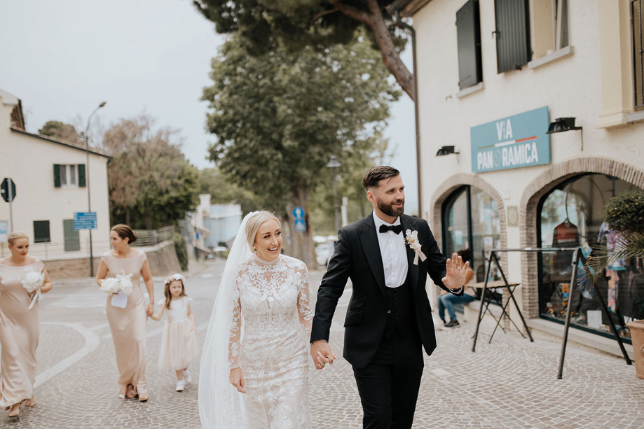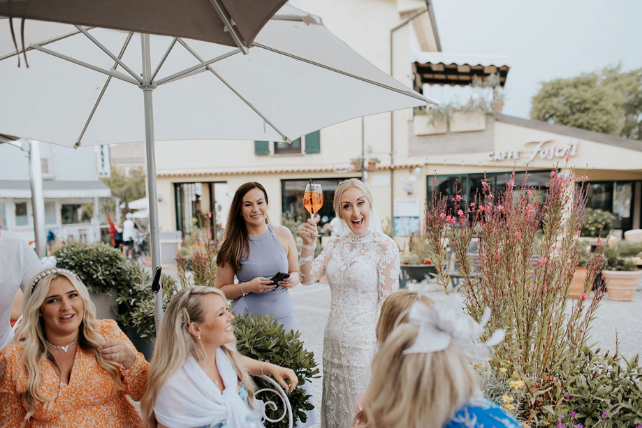 The couple decided to have their religious and legal ceremony in the town’s chapel. “We wanted it all local, so we had our drinks reception in the cafe at La Piazzetta, the nearby square,” Kim tells us. “We extended the aperitivo so Dario and I weren’t rushing about after the ceremony and could enjoy it with our guests.”