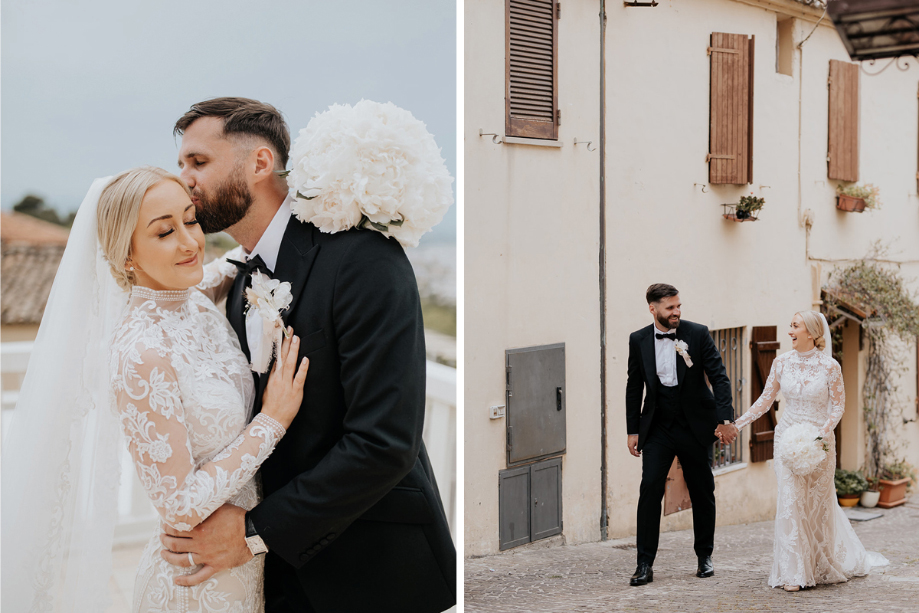 “Dario’s parents live in Italy, and he’s been going to the town with his family since he was a baby, so the idea of marrying there really appealed to both of us,” explains Kim. “We got engaged at the Trevi Fountain in Rome, and our first holiday together was to Italy, so the country is very special to both of us.”