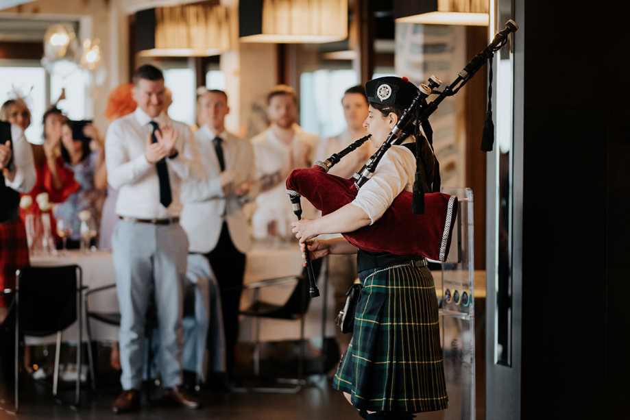 Having a wedding that was a mix of Scottish and Italian was important to the couple, and as luck would have it they managed to hire an Italian bagpiper. “She was amazing,” beams the bride.
