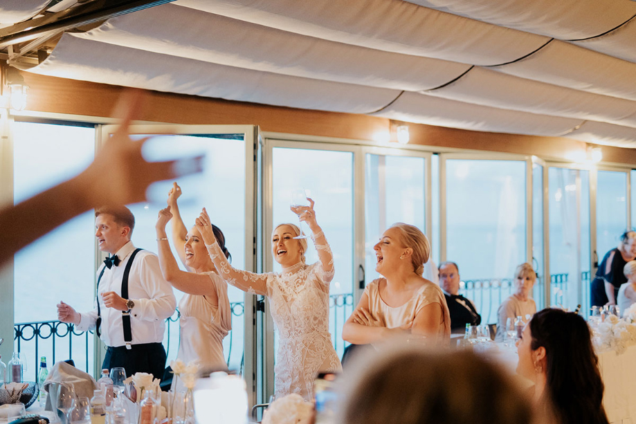 Music was a key theme throughout the day: the priest arranged for a soprano to come and sing – it was so beautiful, some of the guests thought it must be a recording; a jazz trio got the party started at the drinks reception where the couple’s niece Gabriella even gave an impromptu performance; and during the meal the DJ got everyone dancing on the chairs between courses.