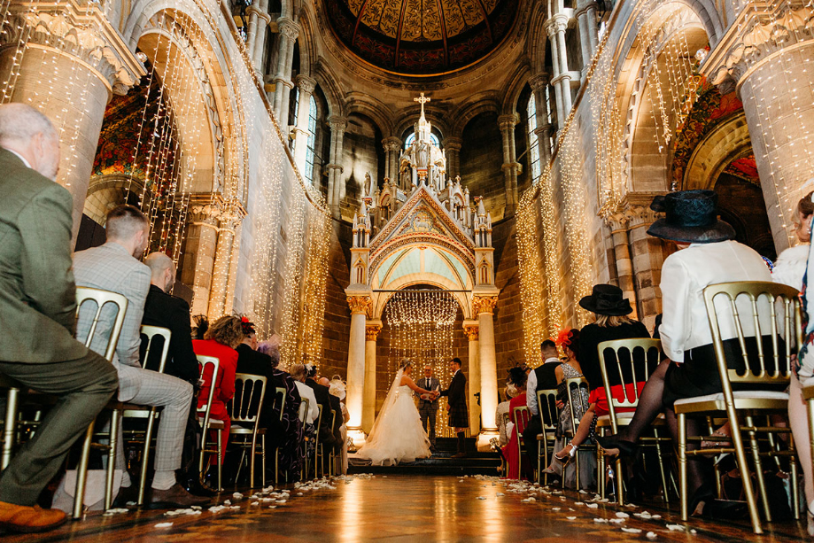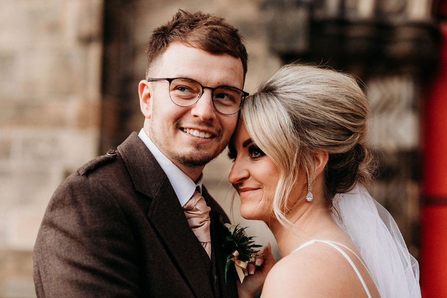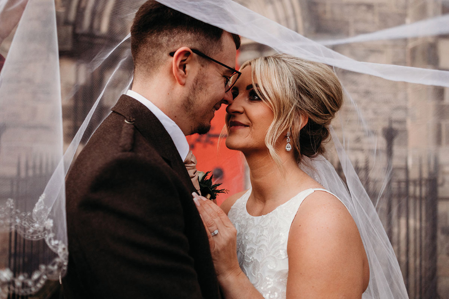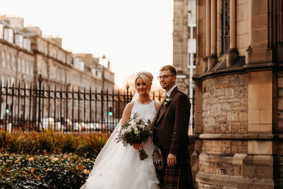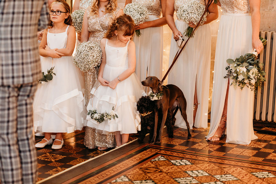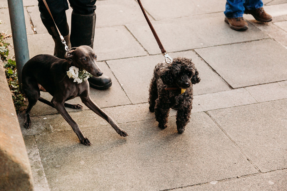 This couple’s cute poodle Ted and whippet Gracie had pride of place at their golden-hued late autumn wedding at the magnificent Edinburgh venue