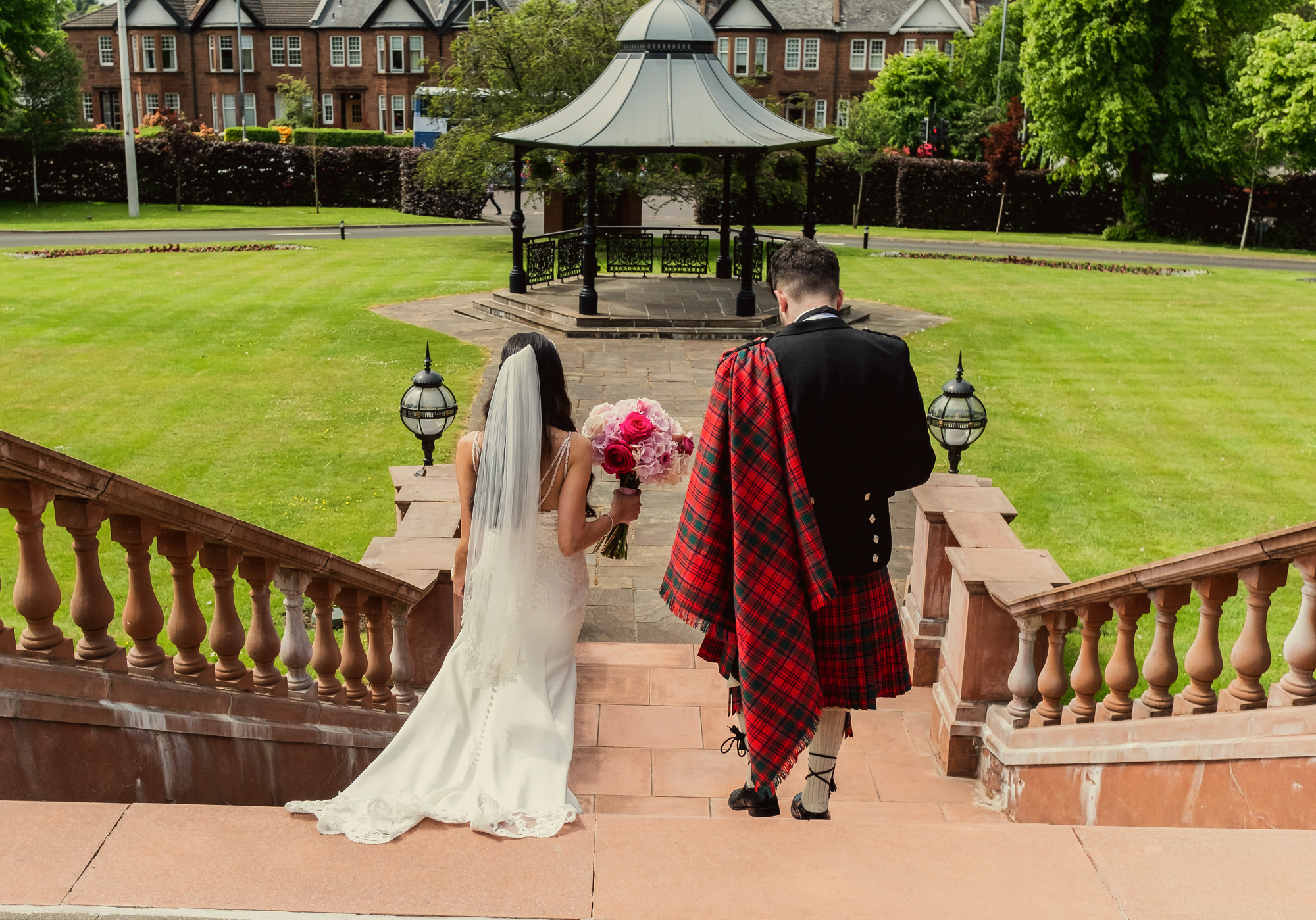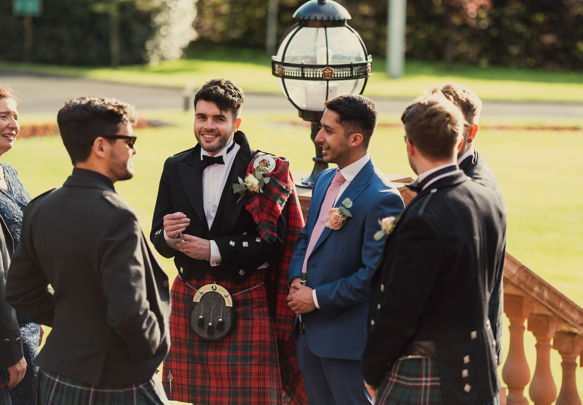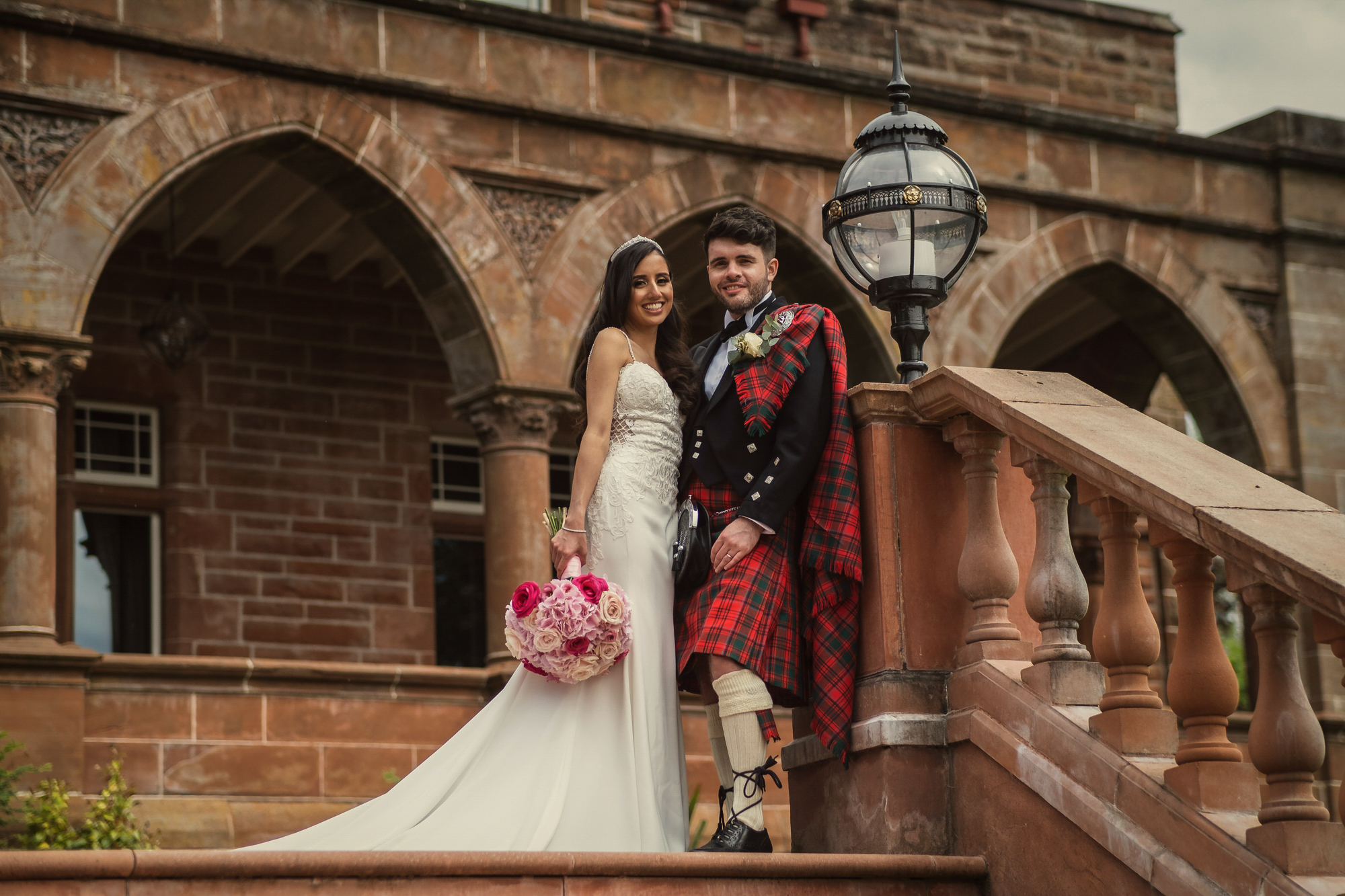 We really wanted to incorporate both David’s Scottish heritage and my family’s Pakistani background. The first half of the day was more traditionally Scottish, with David and his family wearing kilts, while I was in a white dress.