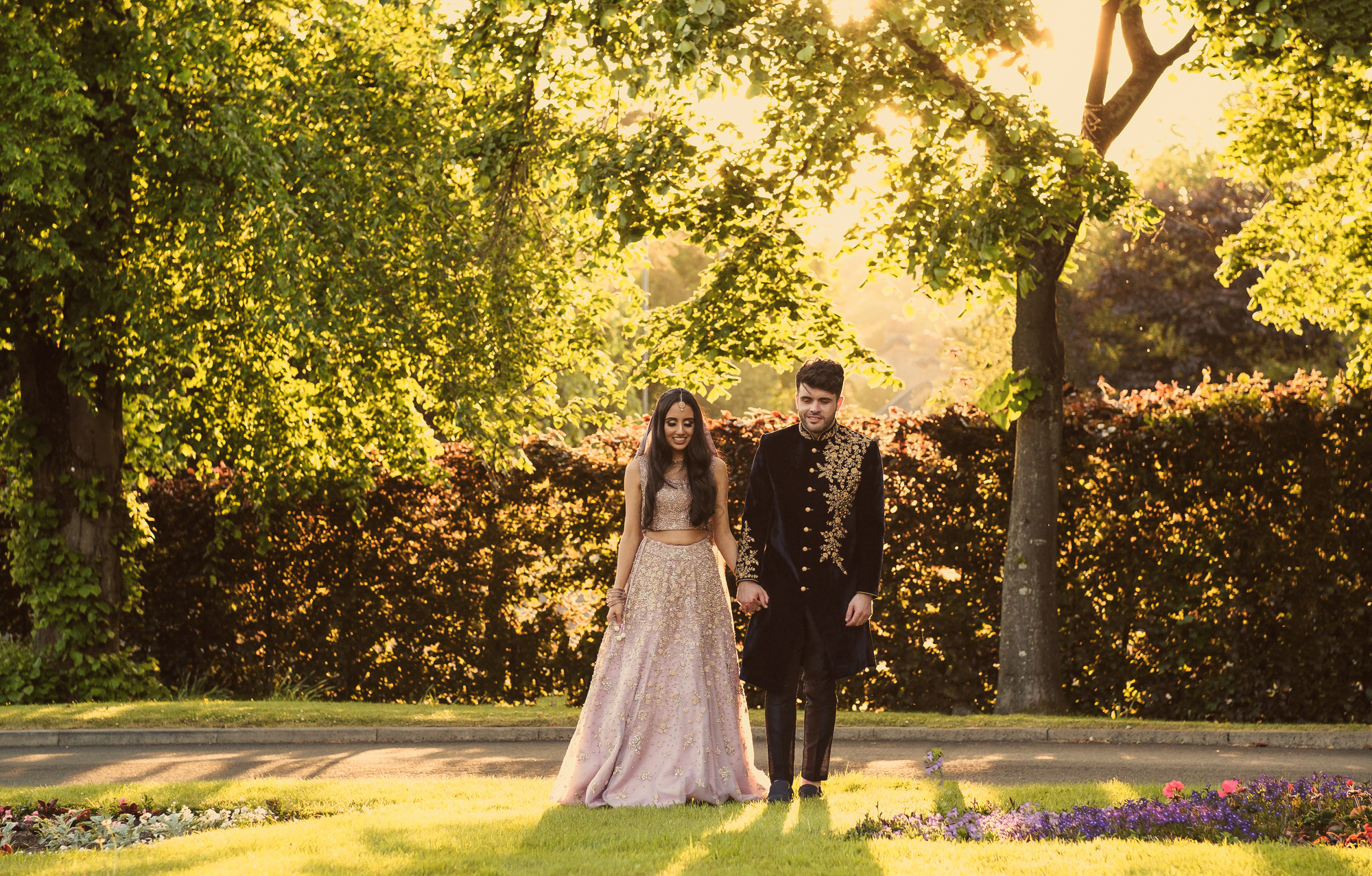 Bride’s and groom’s Pakistani evening outfits Monga’s
