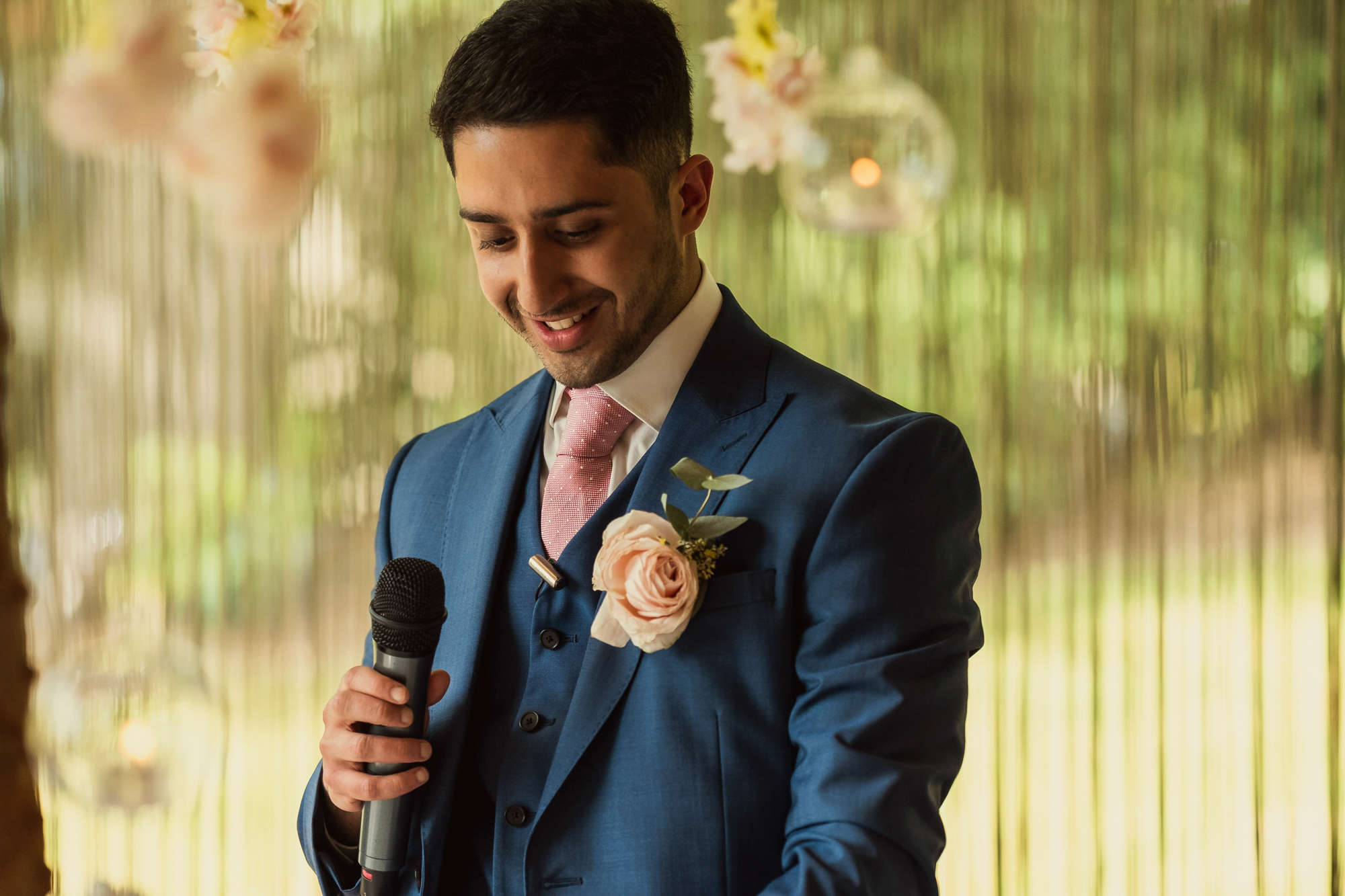 In the evening, we then brought in more of my culture: both David and I changed into beautiful, vibrant Pakistani outfits, as did my entire family and my bridesmaids. We had an evening entrance with our loved ones carrying in traditional Pakistani trays and dancing to a Bollywood song.