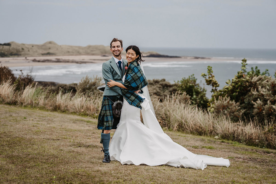 We chose Barnbougle Castle for our wedding reception day. Driving through the Rosebery Estate and suddenly seeing the castle on the edge of the Firth of Forth was breathtaking. There was something so timeless and elegant about the venue; the Lord and Lady of the estate wanted to preserve the castle’s history, and had kept a lot of the original architecture and furniture in place. We were impressed with the wedding team and knew we were in trusted hands.