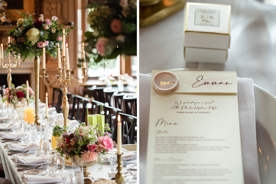 My favourite detail from the day was our table names. Each one was named after a city that meant something to us. For example, we had a ‘Philadelphia’ table, with a note on the menus saying ‘Where we met’, and a ‘New York’ table with a note saying ‘Where our future starts’. They were such cute details.