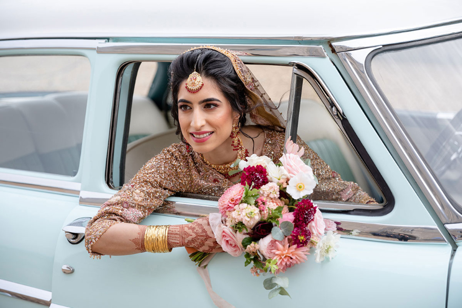 We were in a unique situation as we were blending Scottish and Pakistani weddings. This was really exciting because it gave us artistic freedom to bring together themes and ideas from both traditions without feeling like we were compromising on anything. For example, we had bagpipers and dhol drummers from Unison Entertainment to welcome our guests to the venue, and we booked a Lincoln Capri, Sabeeh’s favourite car and a nod to his American roots.