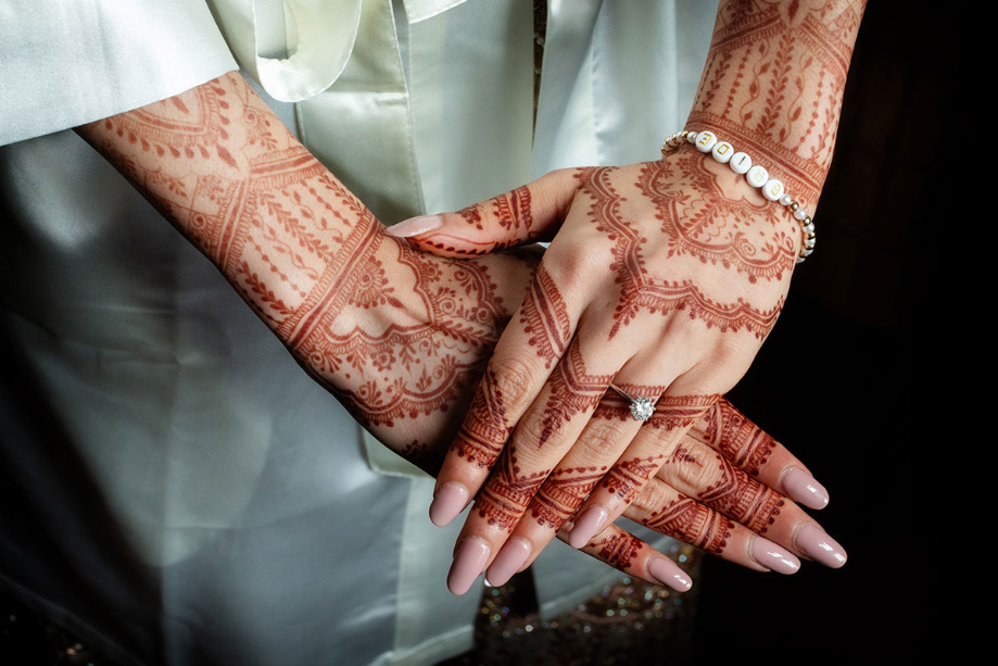 I grew up in Livingston and I really wanted to blend my Scottish roots with our Pakistani heritage. Sabeeh’s family is all from the USA and Canada, so they were very excited to visit Scotland and experience a (semi) traditional Scottish wedding. We decided to have a Mendhi (a pre-wedding celebration which is an extremely colourful and lively event with lots of dancing) and a reception day (where we had our religious ceremony). We had 140 guests in total.