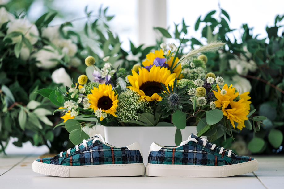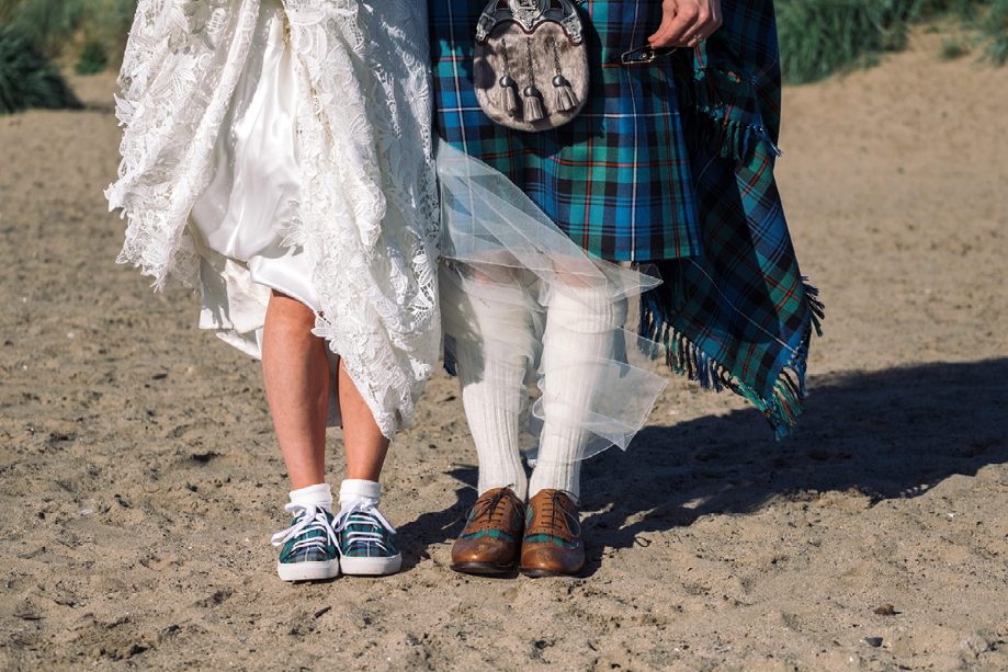 Tartan shoes ScotlandShop (bride); Zigzag and Zoom (groom)