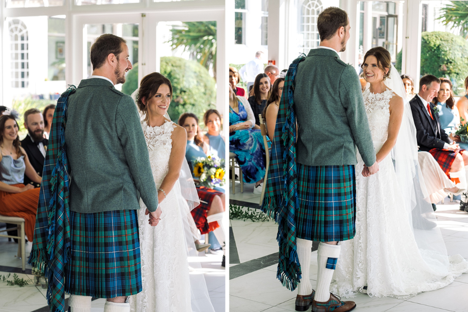 Graeme and I both accessorised with bespoke tartan shoes. My trainers were from ScotlandShop and his brogues were from Zigzag and Zoom. He was thrilled that its custom service meant he could incorporate his granddad, dad, and my dad’s tartans on his shoes.
