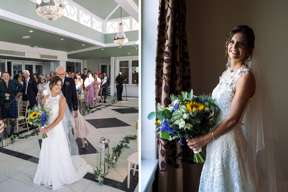 I was pretty clueless about wedding flowers, other than an inkling that I wanted sunflowers incorporated. Jo at Flowers at 7 in Ayr worked wonders. I loved what she produced and think the colours tied everything together.