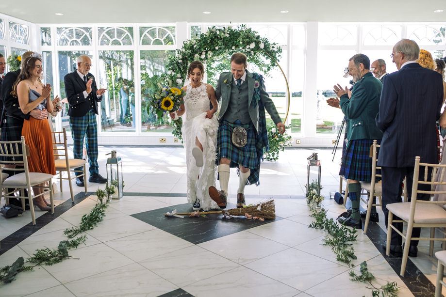 Celebrant Niki Smith absolutely nailed our ceremony. It was a mixture of emotional and funny and our guests raved about it afterwards. We wanted family members and friends to participate as much as possible and Niki helpfully shared myriad ways we could approach this. Two of my best friends did a reading for us; our mums got involved in our handfasting; and we ‘jumped the broom’ with input from another friend.