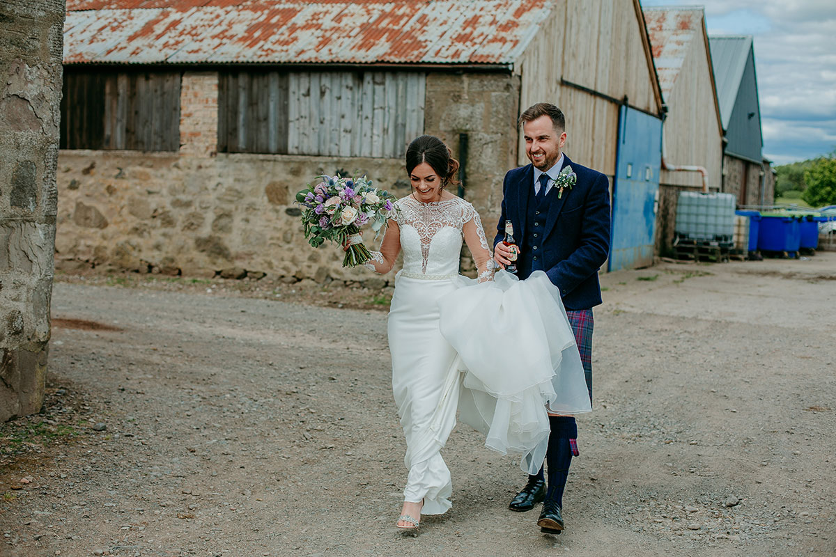 An autumn barn wedding was always what we’d dreamt of; romantic and Scottish with a retro vibe. Think burnt oranges, olive greens, ivory and gold. For decor, we had pumpkins, disco balls, autumn flowers and lots of foliage. Roni and her team at Allwrappedup were brilliant at helping us bring our vision to life.