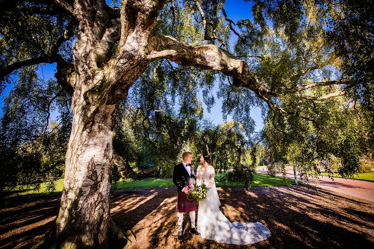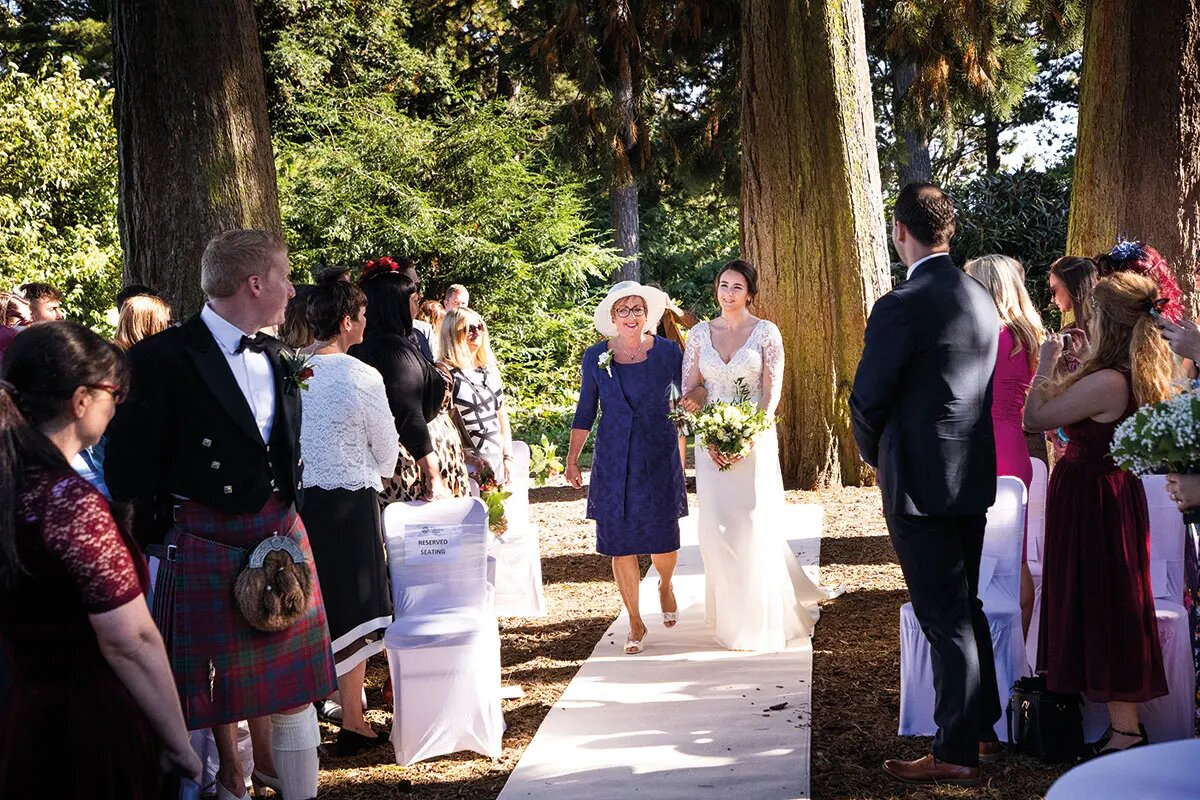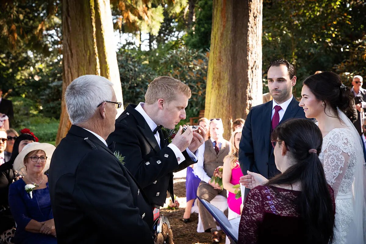 We found our ‘escape from the city’ setting at the Royal Botanic Garden Edinburgh. When you’re surrounded by the impressive old redwood trees in the John Muir Grove, it’s hard to believe that you’re in the heart of the capital; there was no better spot for our humanist ceremony. Many guests were amazed at us managing an outdoor ceremony in Scotland in September – but we can’t take the credit for that!