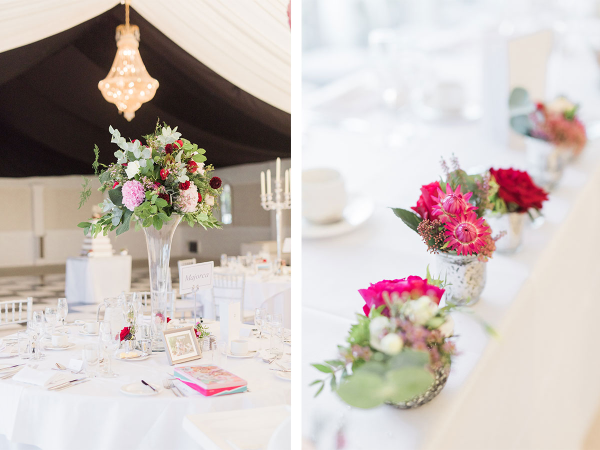 I knew I wanted my flowers to make an impact and provide that ‘pop of colour’, especially in the marquee which is white, so I wanted to bring warmth to it with greenery, flowers and also lots of candles.