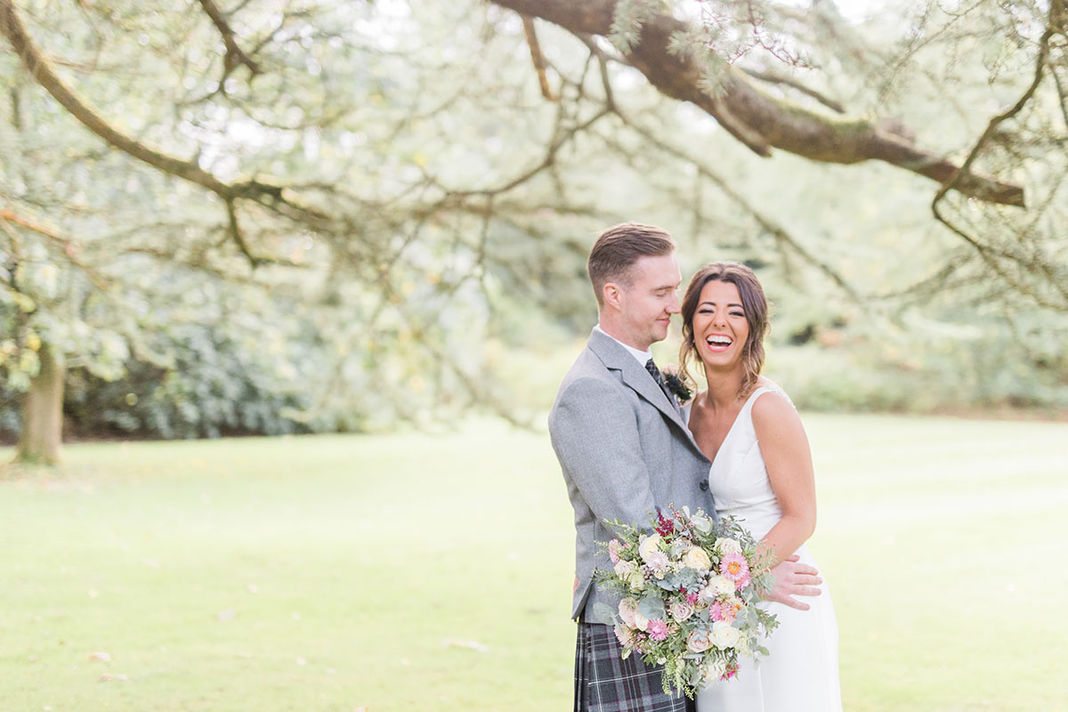 The picturesque views over the River Clyde and lush gardens just felt like the dream setting. I loved the fact the whole wedding party could arrive the day before. The boys all played golf and then in the evening our families and wedding party all enjoyed a meal together, it was the perfect start to the weekend.