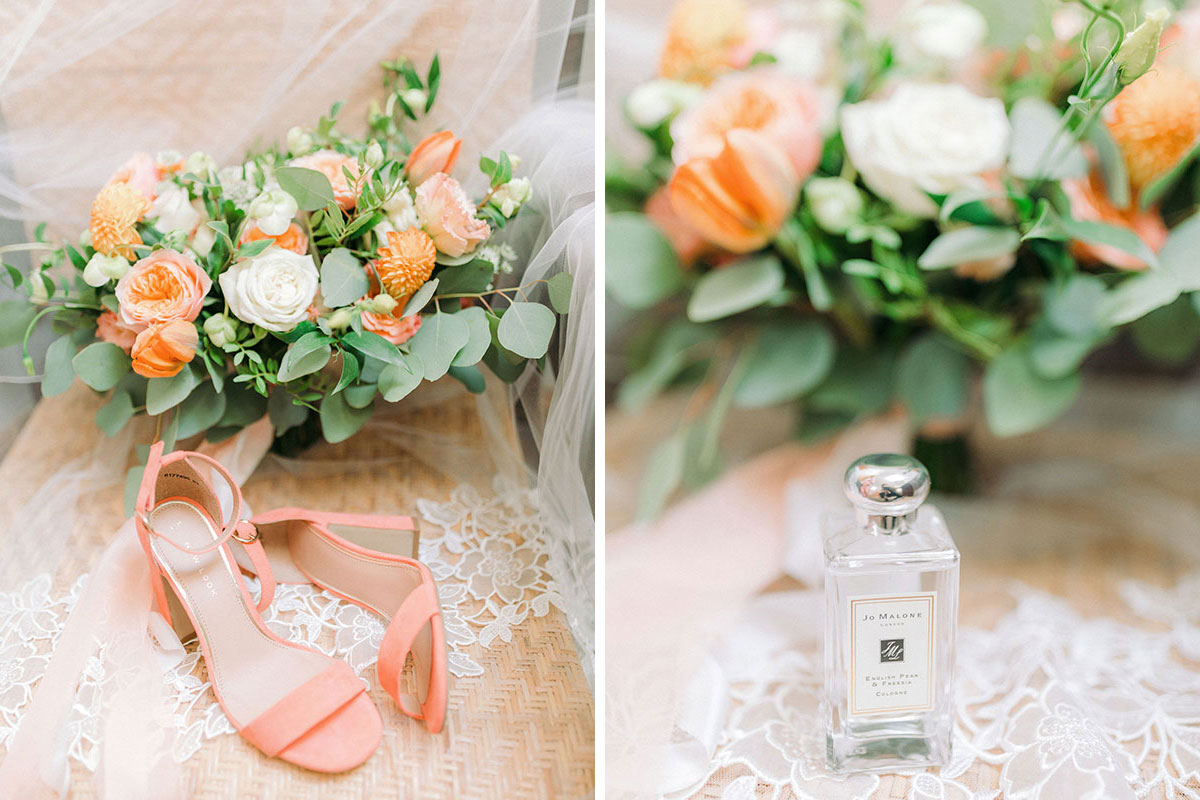 We always knew that we wanted to throw a huge party for all our friends and family, with a big focus on music and dancing. I also adore the colour coral, so that was definitely the driving force behind the look of the day. Everything from the invites, to the flowers, to my shoes, had a touch of coral in them.