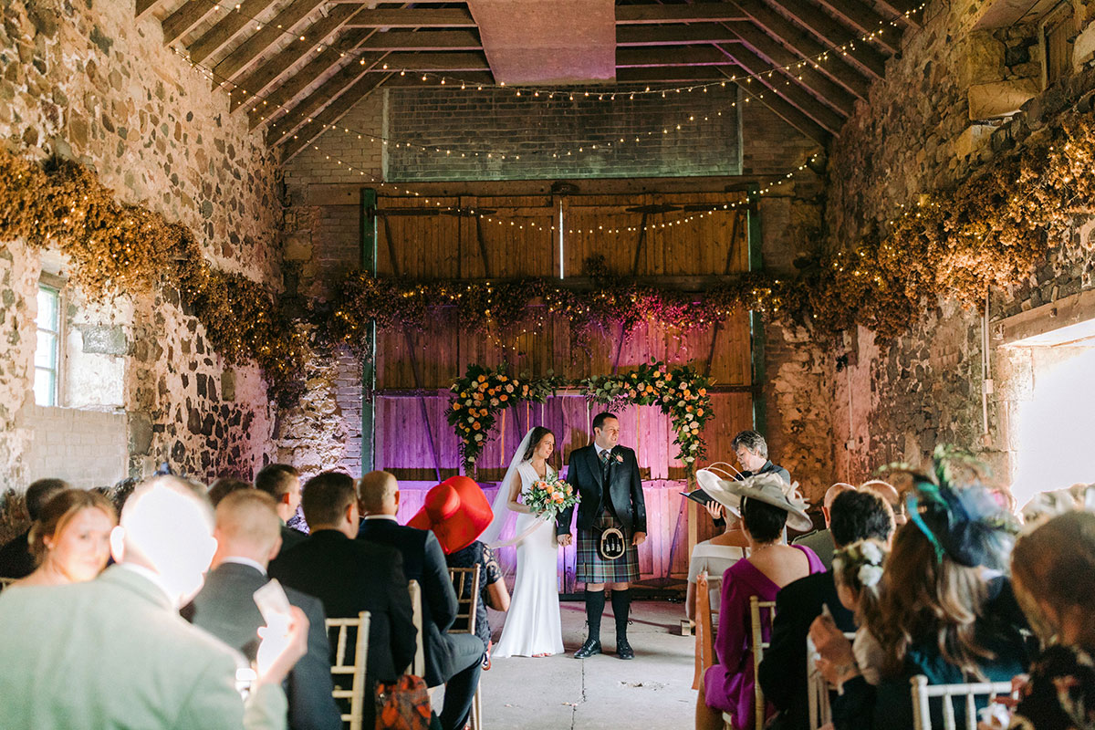Colin and I veered towards a barn-style venue from the very beginning. We wanted to represent our country roots, and it also added to the relaxed feel we were aiming for. I also love how you can really make a barn your own with personal touches. Pratis Barns have so much space, with three separate structures for the ceremony, drinks reception and evening, as well as gorgeous outdoor areas.