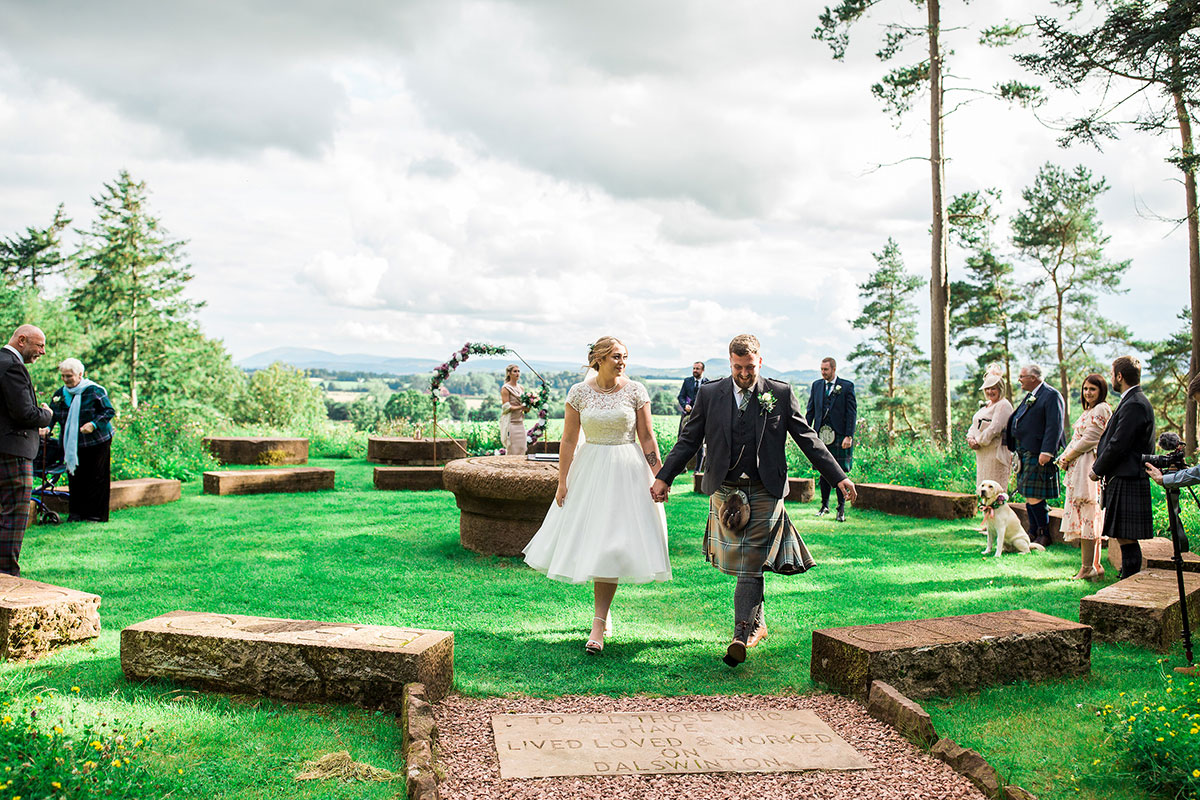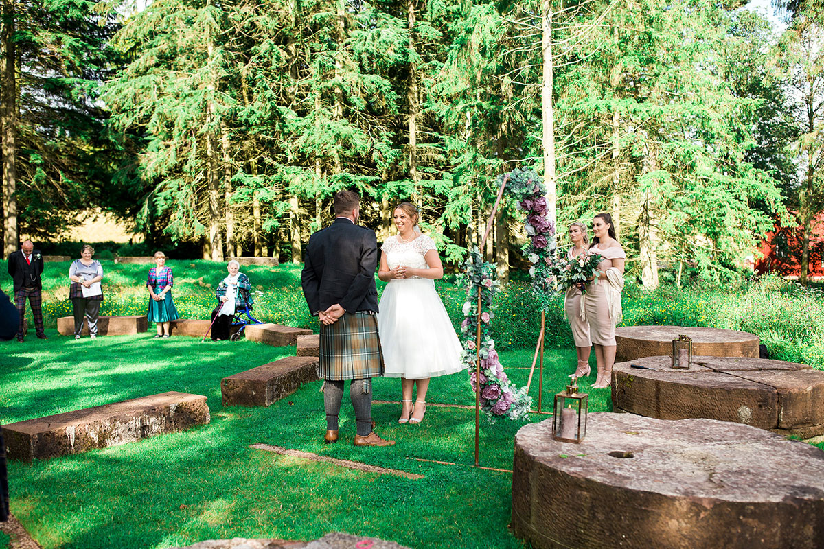 Dalswinton Estate has a beautiful Journey Garden for ceremonies and is just down the road from where we live, so it fitted perfectly with our plans for an intimate, outdoor wedding. As we needed to be outdoors for the ‘reception’ too due to Covid restrictions, we threw a wee garden party. Despite a few spits of rain, we were incredibly lucky as the sun shone most of the day.