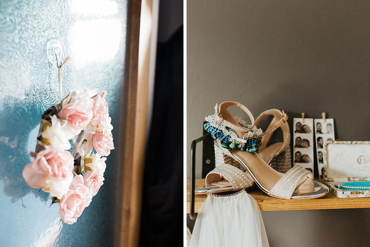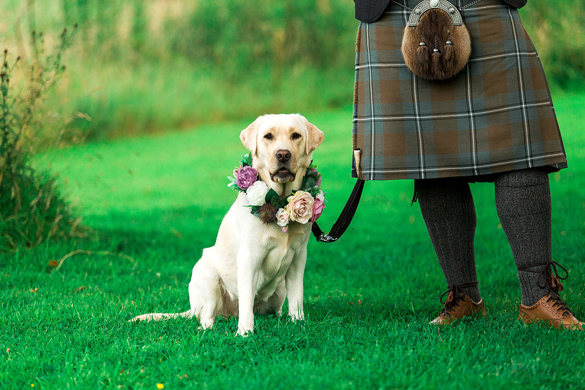 It definitely felt like a unique wedding to us given the circumstances. I wore my great grandmother’s pearls and my mum stitched a charm from my dad onto my garter so I could keep it with me. Our dog, Rosa, was able to join us and wore a cute flower collar.