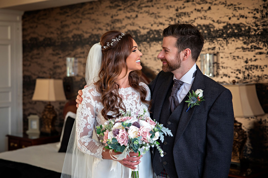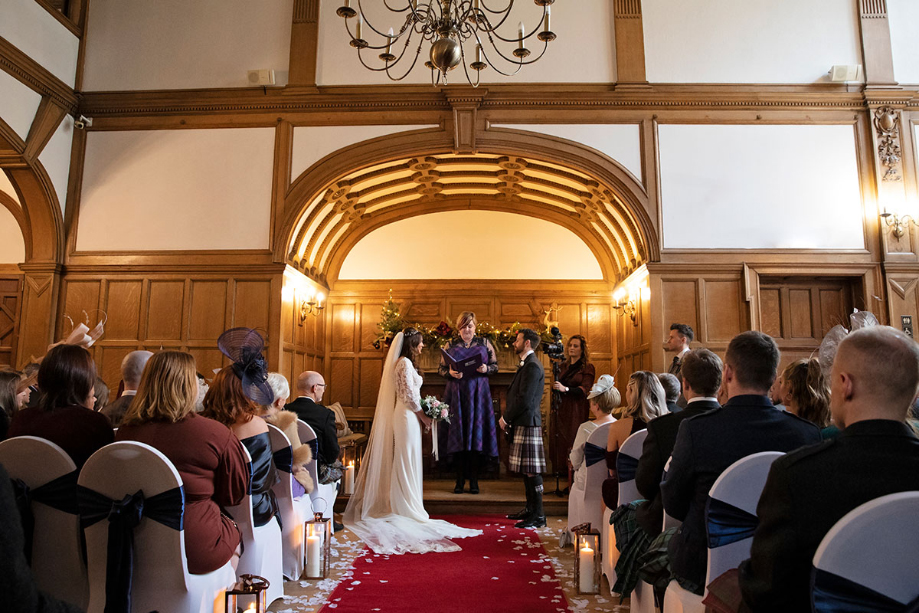 We were after a venue that felt warm and cosy. When we saw the large hall fireplace at Inglewood House and Spa in Alloa, it really sealed the deal – and of course its Christmas decorations and all-round festive atmosphere didn’t hurt either.