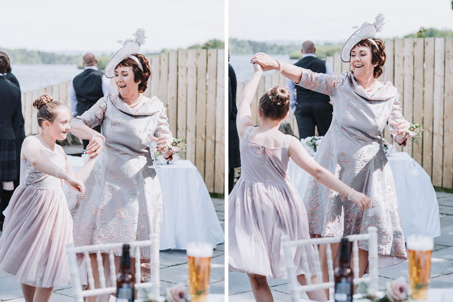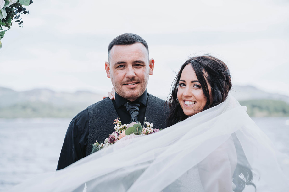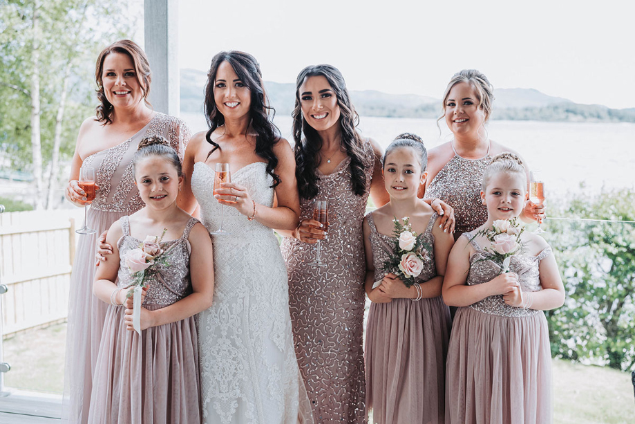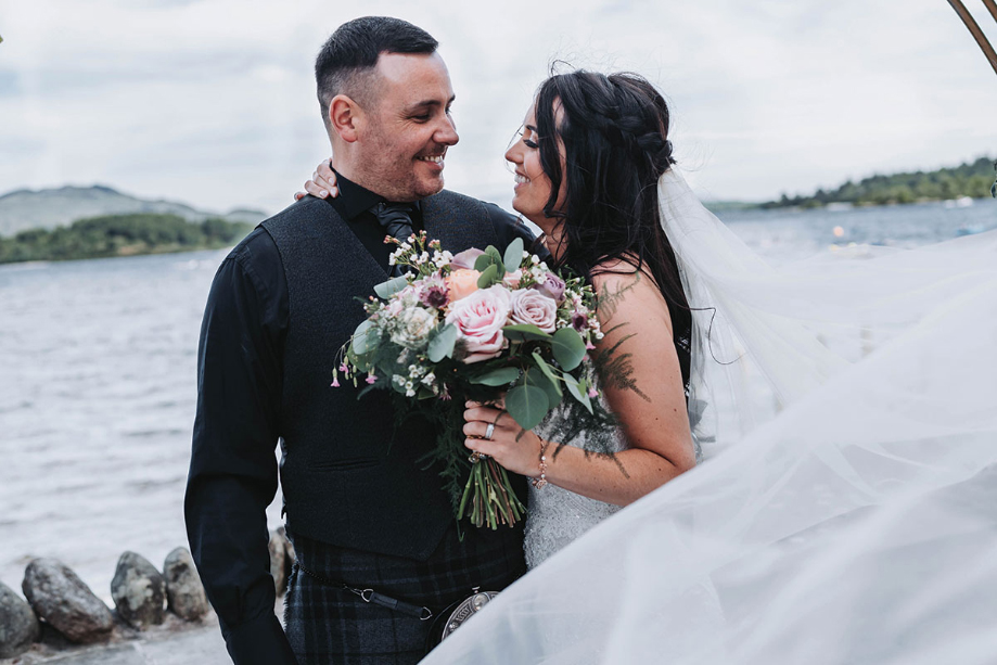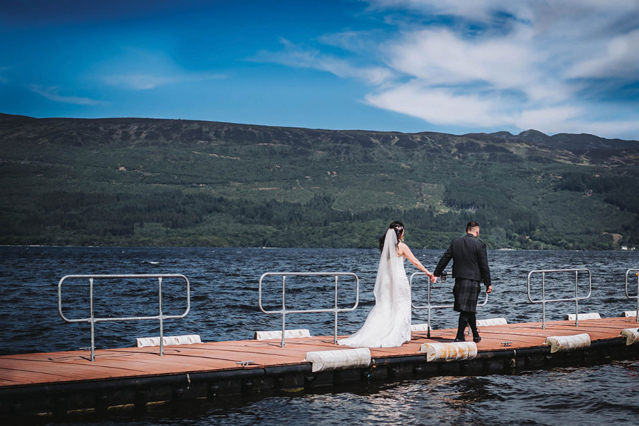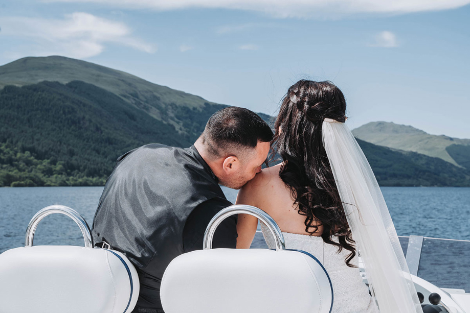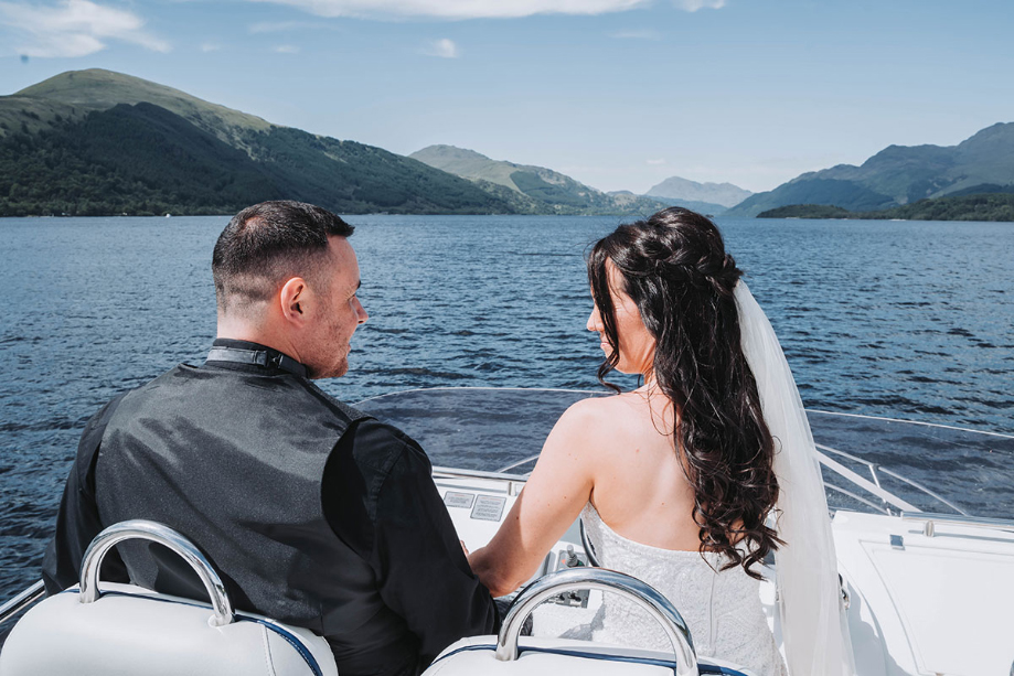 One of the day’s highlights was the boat trip we took in the sunshine after the ceremony on yacht Beau Jangles. Our neighbour’s son Rhys piped us onboard, and we went out on the loch with a glass of champers in hand. Our guests all got a shot on the boat too.