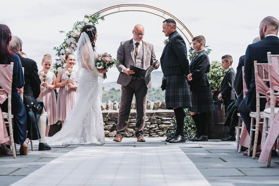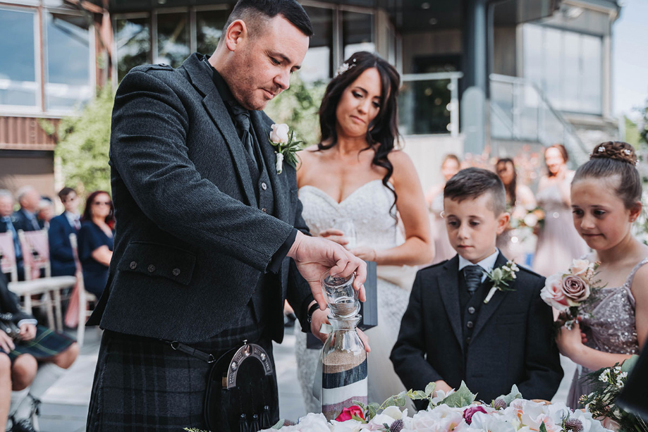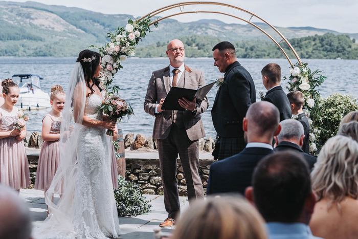 This wedding on the Bonnie Banks had starring roles for the couple’s four children and a cruise for the newlyweds, but there was a sad story behind the day’s smiles