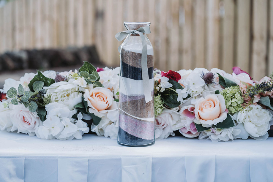 Our amazing celebrant David Smith talked about her as part of our wedding ceremony too. As we each have two children from earlier marriages, we included a sand ceremony to represent our two families coming together. Our two mums were meant to be involved in this part of the ceremony, but George’s Auntie Catherine (also his mum’s twin) fulfilled the role her sister would have. George and I wrote our vows in secret, so they were a nice surprise.