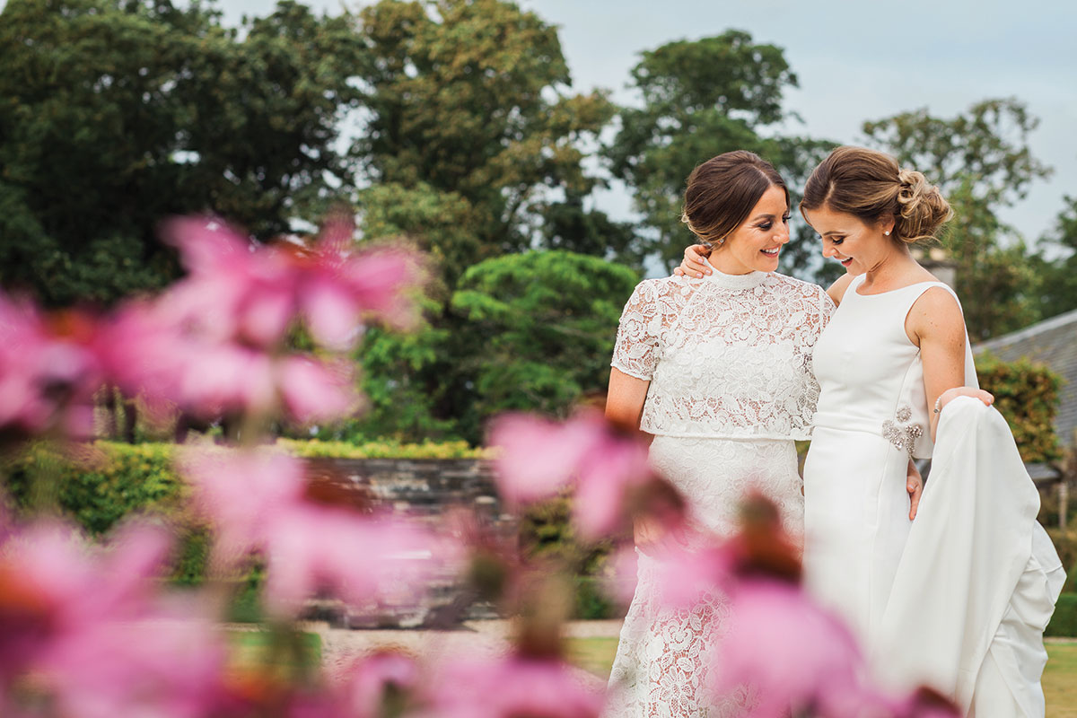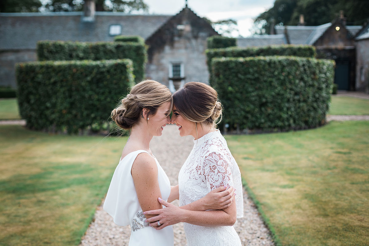 After both brides proposed to each other in tropical destinations, Kim and Chloe opted to wed in Edinurgh's Carlowrie Castle thanks to its opulent yet homely feel