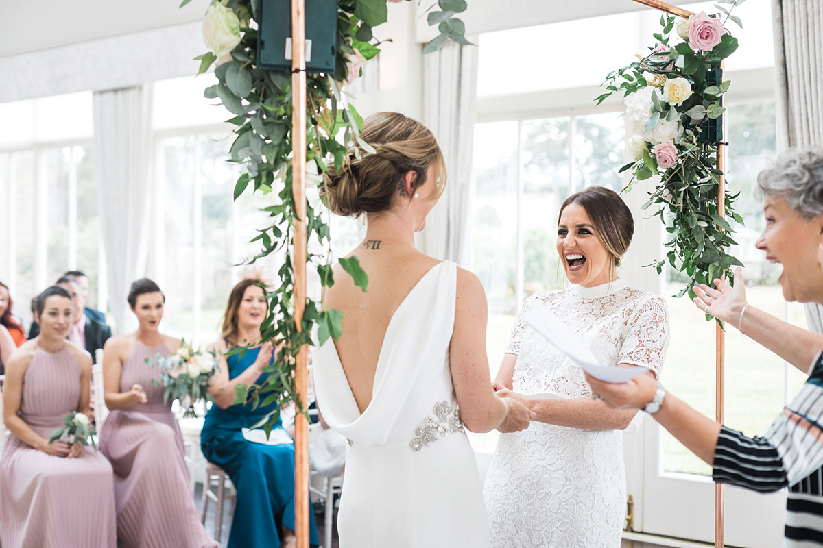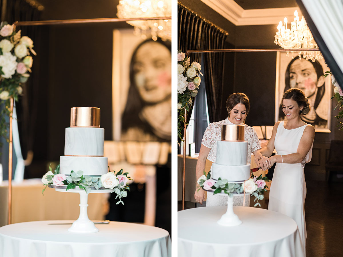 When it comes to anything aesthetic we are hard to please! Blush tea roses and eucalyptus featured heavily, and we used copper terrariums in geometric shapes. We also had a copper arch decorated by our florist, which was used as a focal point to frame us as a couple.