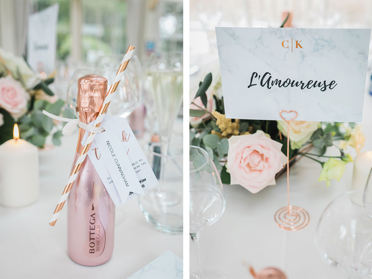 The first decision we made was our venue. Kim and I were attracted to Carlowrie Castle for its exclusivity and grandeur; we wanted it to be like we were welcoming guests into our own home, but in a truly luxurious way. The place’s decor – with its modern grey and neutral palettes, high-end furnishings and bold artwork – appealed to our personal tastes.