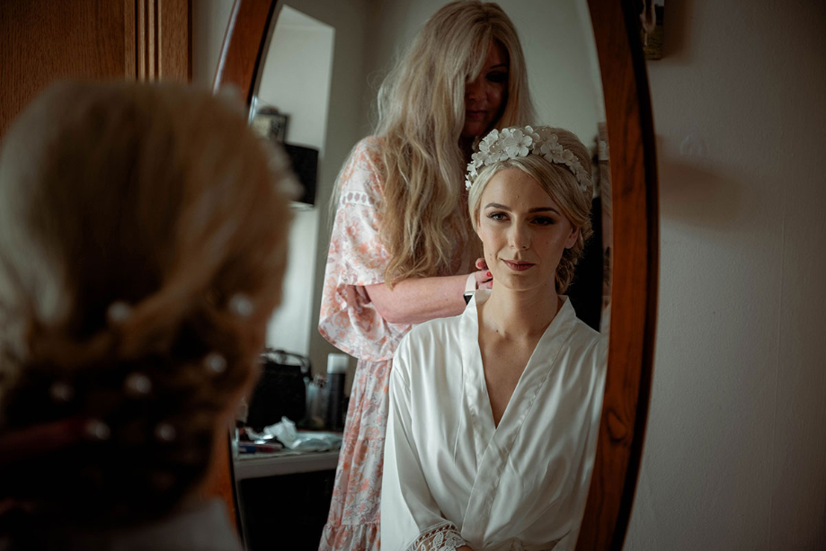 On the morning of the wedding my side of the party all arrived at my parents’ house to get ready. I helped my flower girl get ready and it was a really cute moment to share together. We were super organised and on time, until right before the dress reveal – my mum was the only one who could put me in the dress because it was a surprise, and it caused a bit of a bottleneck. David’s party got ready at his mum’s and their stress was getting stuck in traffic.