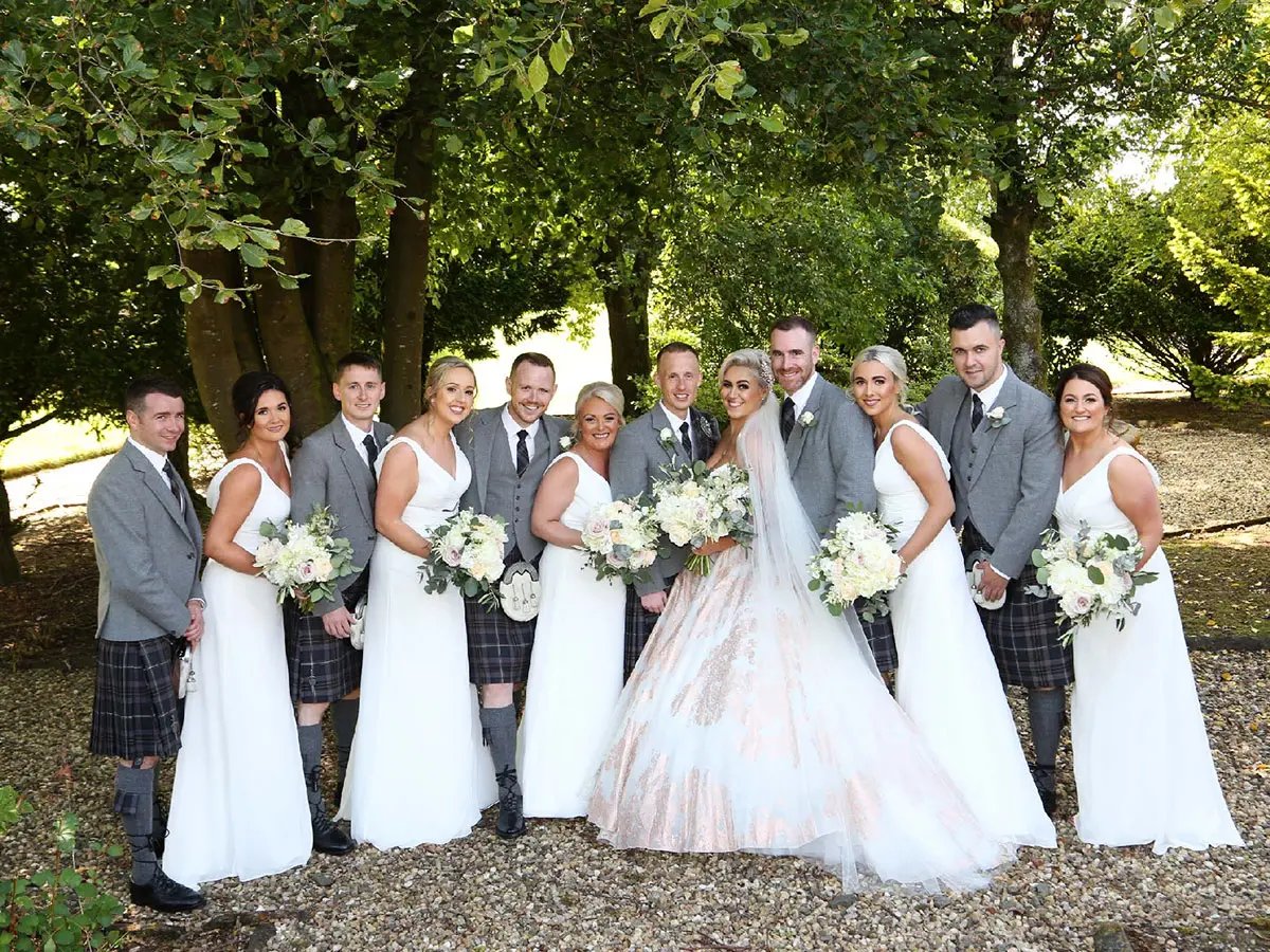I’m a music teacher, so live performances were a vital part of the day. At the ceremony in St Mary’s Parish Church there was a harpist, organist and some of my private pupils sang. At the drinks reception there was a pianist, followed by our wedding band, Sugarush, and a surprise set from Drums N’ Roses.
