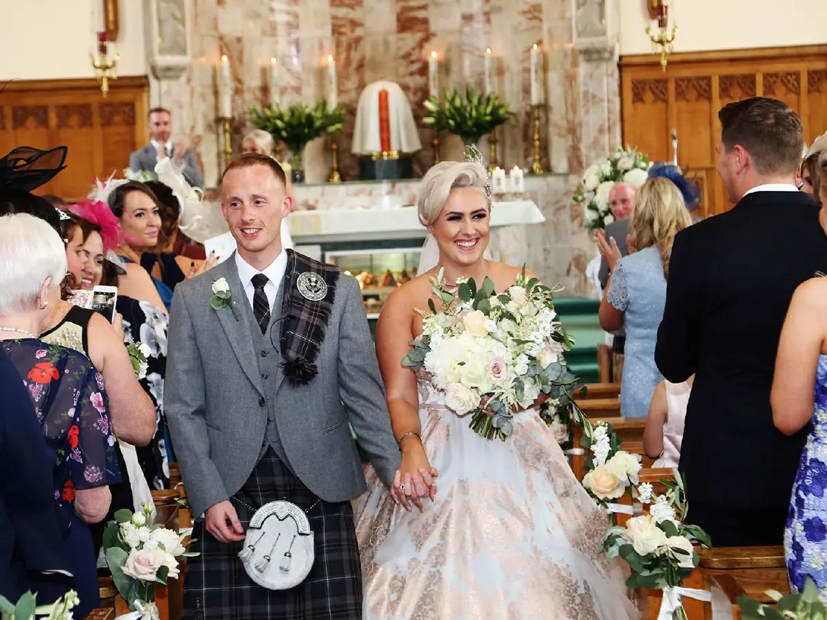 Live performances played an important part in music teacher Caitlin and her partner Robert's big day, with the bride's pupils (and even her mum!) singing throughout the day