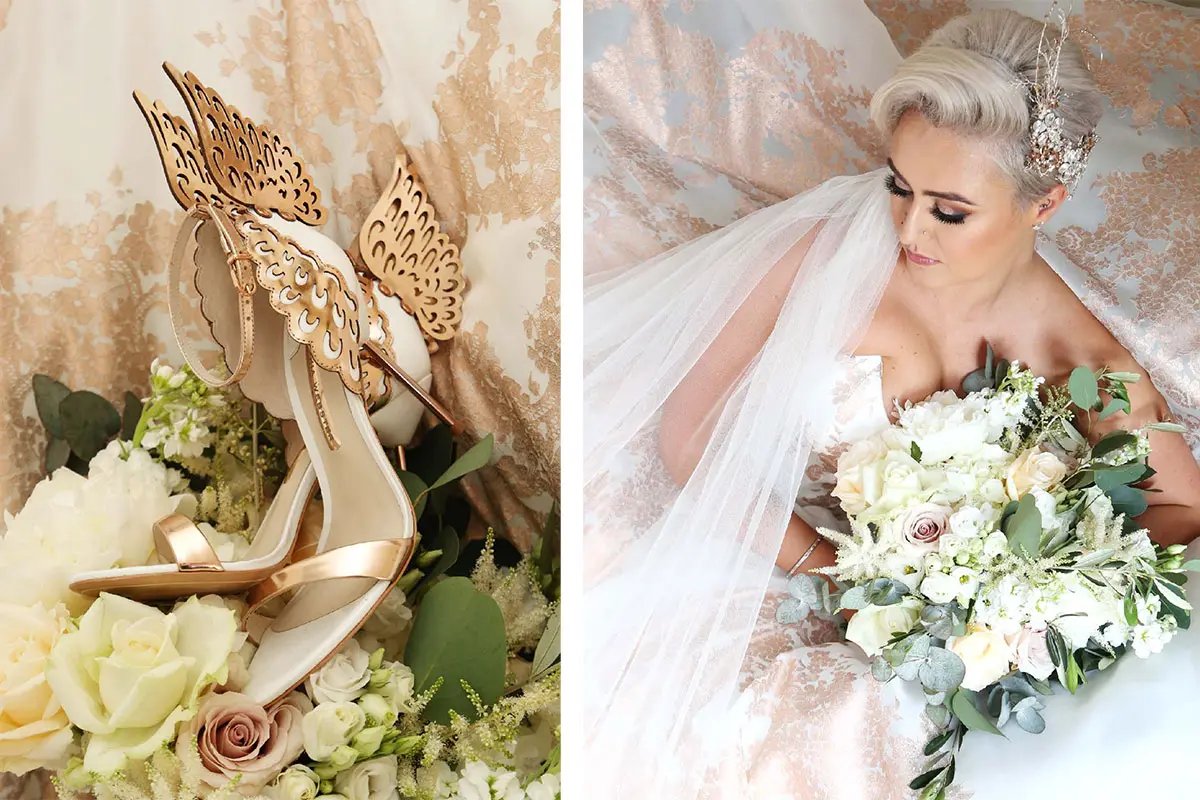 “At first, I wanted my wedding themed around Las Vegas, with casinos and lots of glitz, but when I found my dress I based everything round this instead. The rose gold detailing was mirrored in the jewellery worn by the bridal party, table plan and stationery. It really complimented the ivory that was the other colour in our palette.