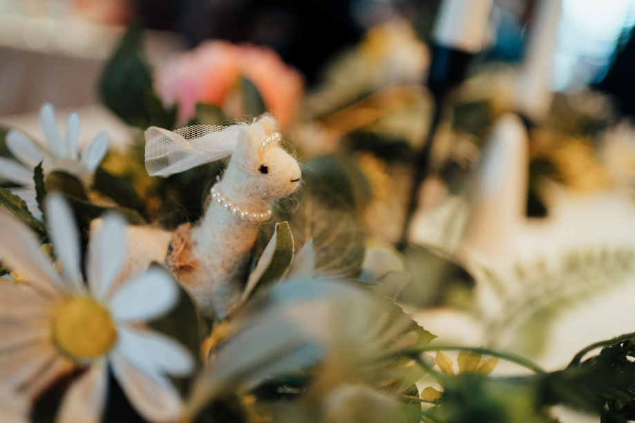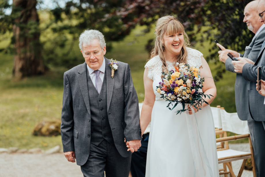 There was a wildflower theme running through the styling of our wedding. My veil from Amberspice Bridal Boutique featured loads of colourful embroidered flowers which worked wonderfully with the garden setting, as did my sister’s vintage Laura Ashley floral bridesmaid dress.