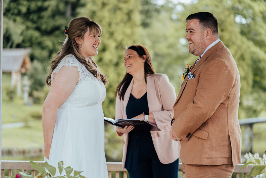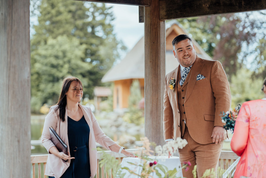 Our guests had to stand during the ceremony and would not have felt comfortable with a service that went on for a long time. Neither of us are religious, so we chose to have a simple, but personal civil ceremony led by local registrar Gillian McLean.