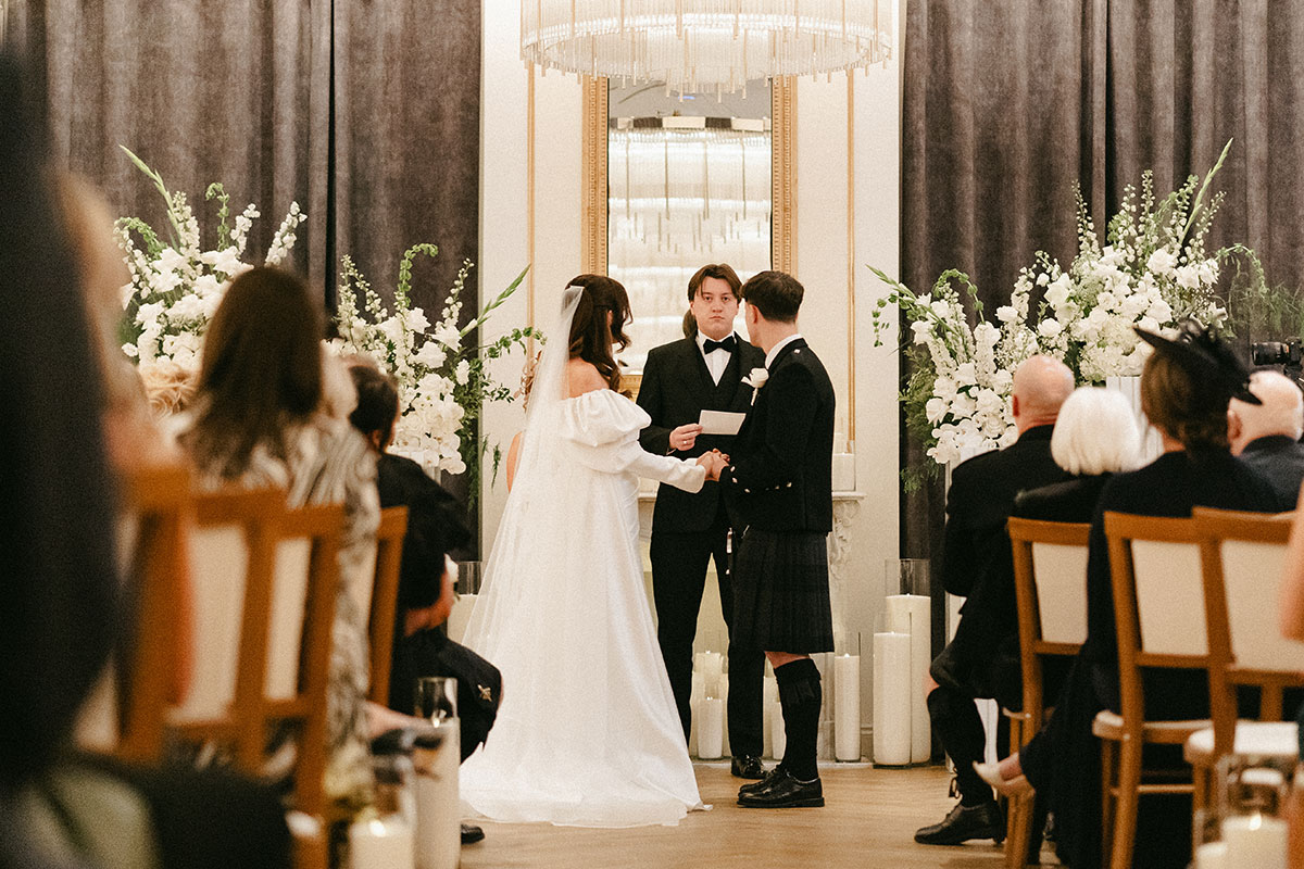 Despite planning the day in only three months, it included a gorgeous gown from Glasgow bridal boutique Eleganza Sposa, matching MacGregor and MacDuff kilt outfits, personalised decor by Poise Candles Events, live music by Ginny & The Tonic and Waterfront Collective and much more – all captured by the content trifecta, Connor Barrett Photography, RHB Films and Flashback Content Creation.