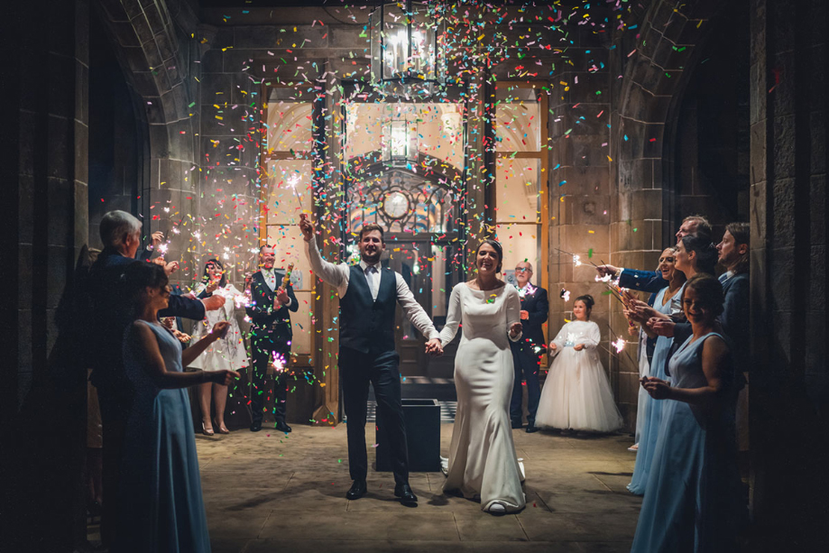Our photographers Del and Jay Jay travelled up from Glasgow to Stornoway especially for the wedding. Our favourite photos are taken outside the castle at the end of the night with sparklers and confetti cannons going off around us. Everyone in those photos look so happy.