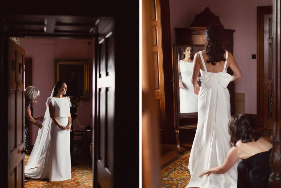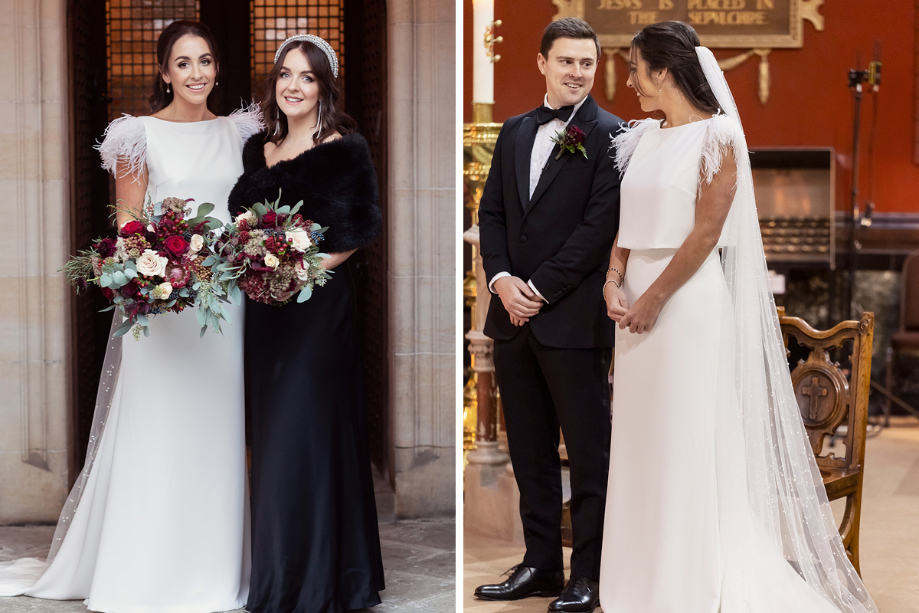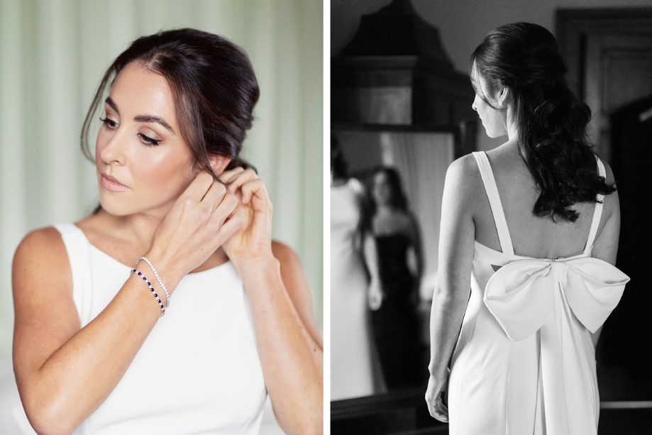 I found my Jesus Peiro dress at Miss Bush in Surrey. The store felt much more current than other options I’d looked at, and as soon as I began trying on, I knew it was where I would find my dress. I chose a feathery top that could be layered over the dress and had a removable bow added at the back, so I could switch looks up between daytime and evening.