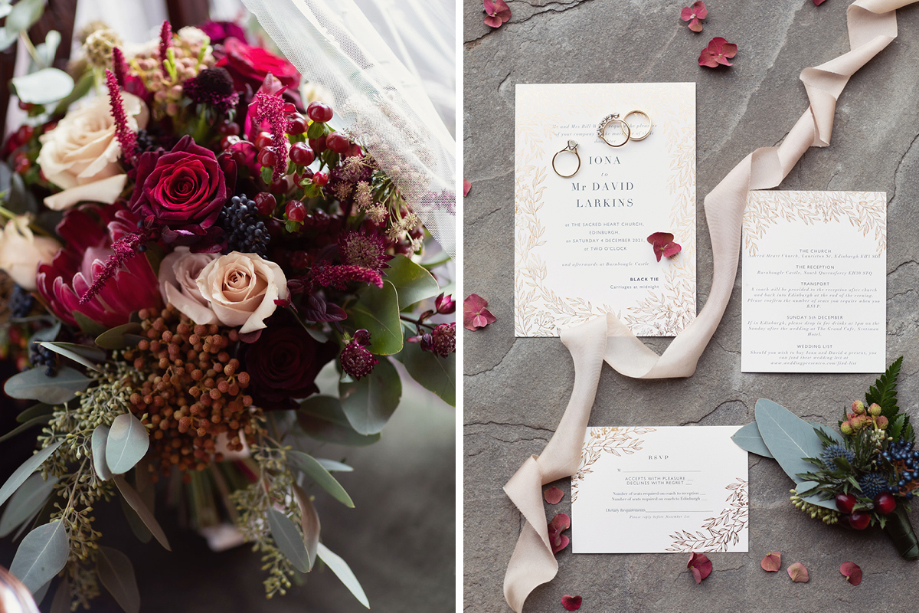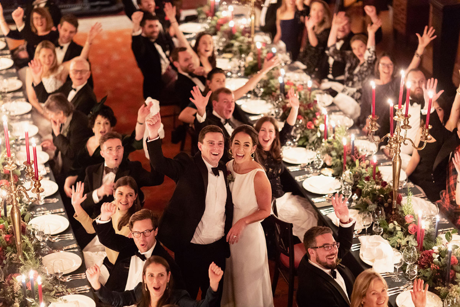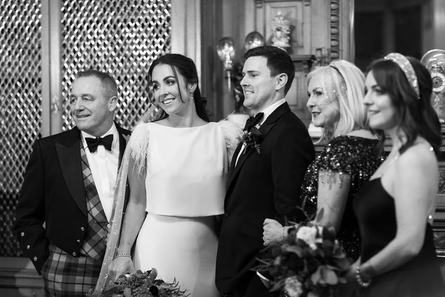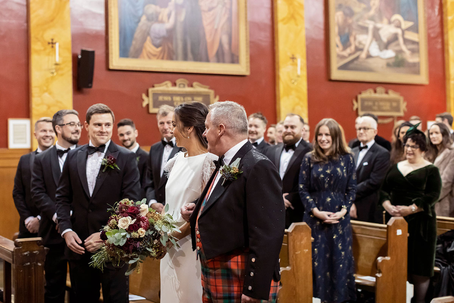 Iona and David married at Sacred Heart Church in Edinburgh before heading to this luxury castle venue for a chic and magical festive reception