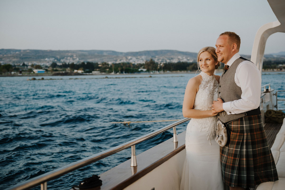 This Scottish couple jetted off to Cyprus for their wedding, where the reception was held on a luxury yacht